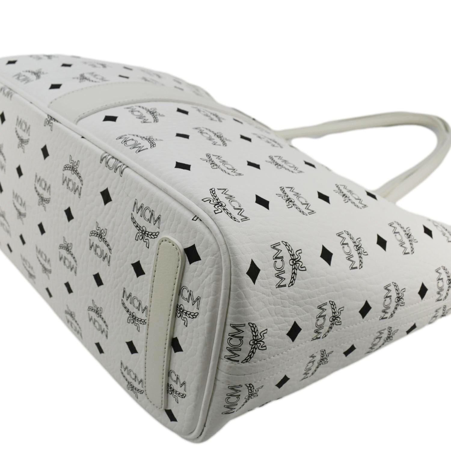 MCM Reversible Liz Medium Visetos Canvas Shopper Tote Bag in White
