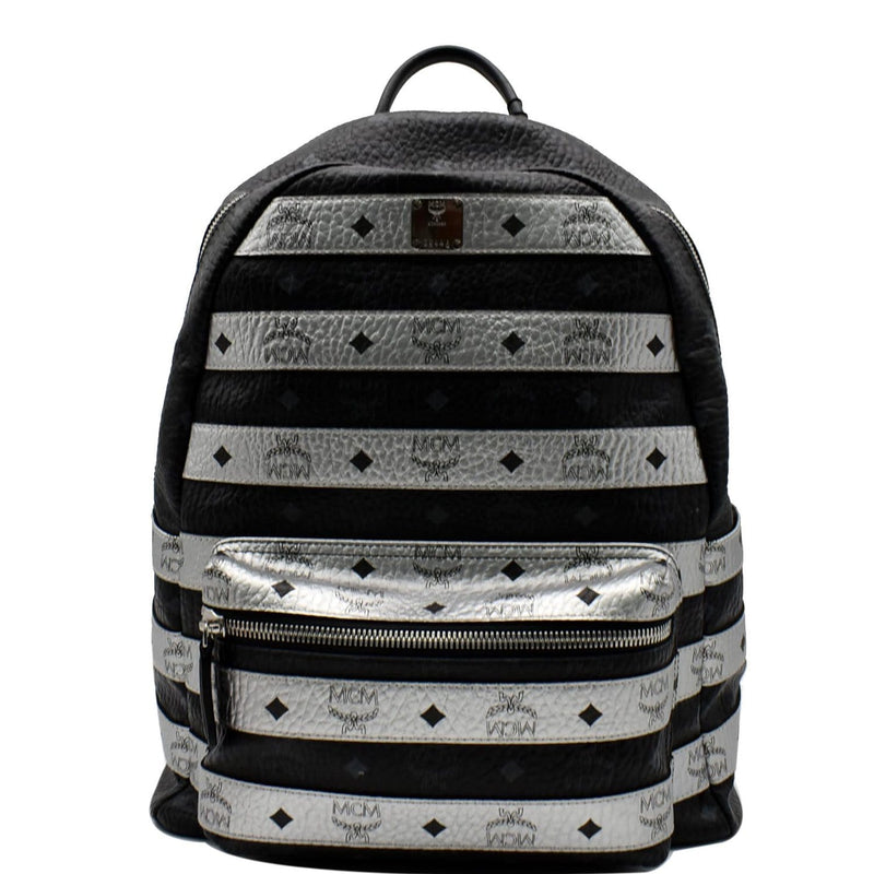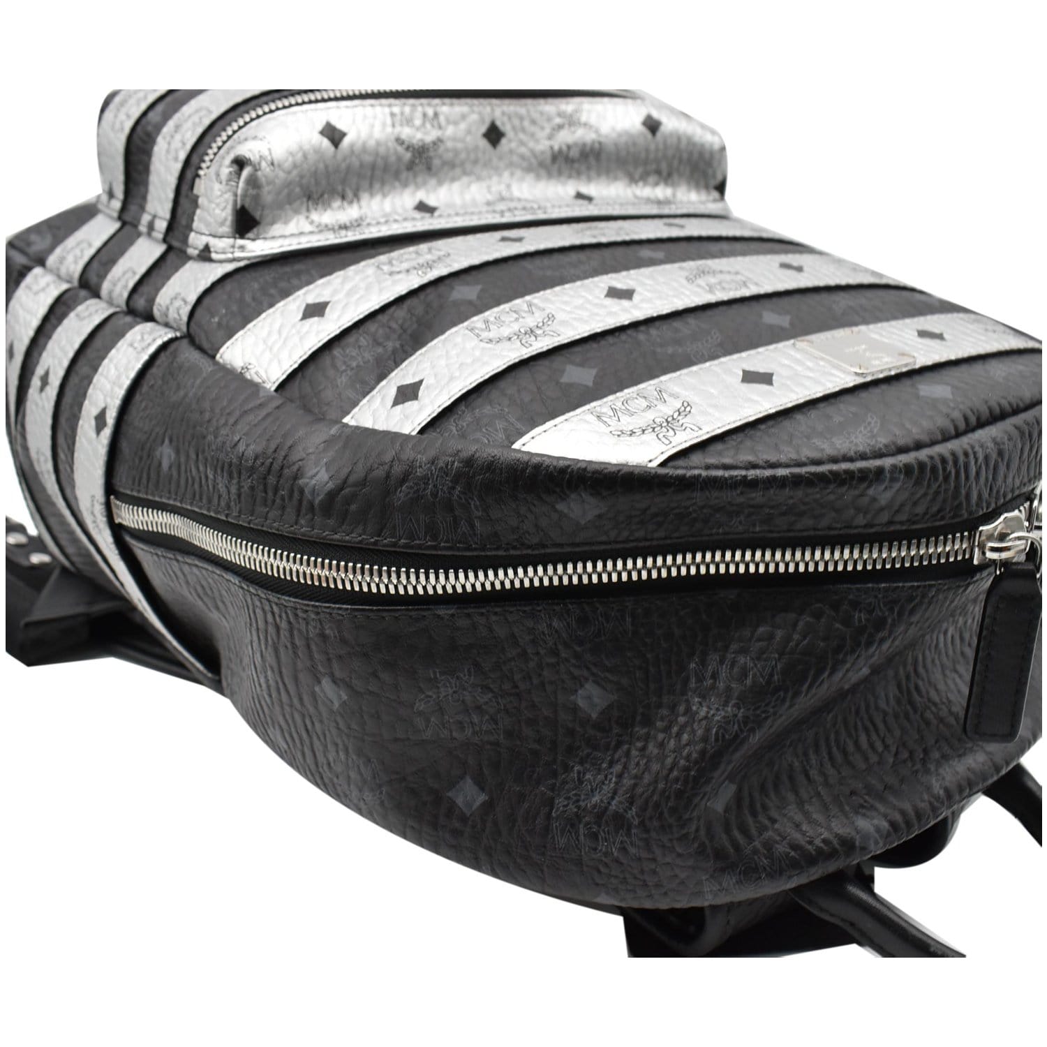 MCM Striped Medium Stark Metallic Visetos Backpack Bag Silver Black