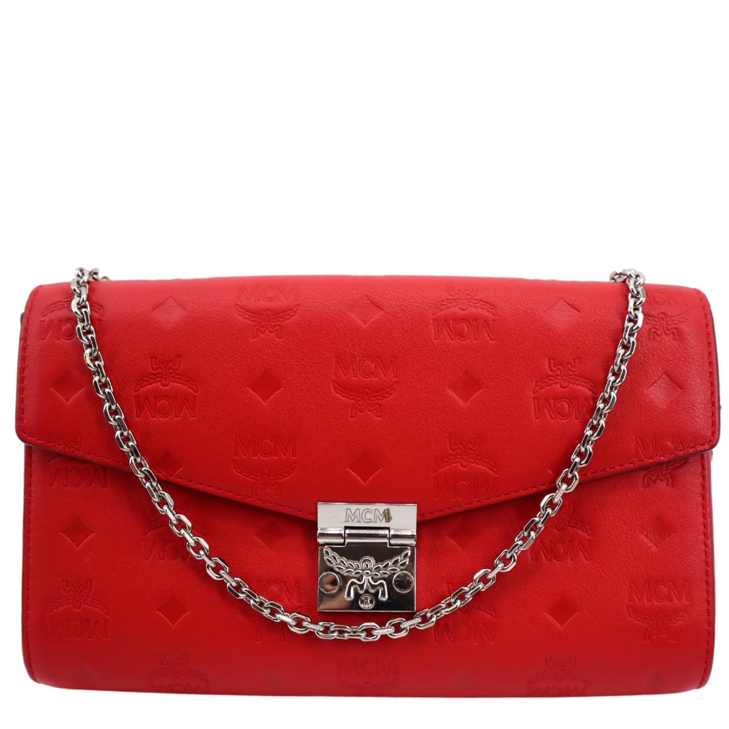 MCM Tracy Monogram Leather Chain Crossbody Wallet Red
