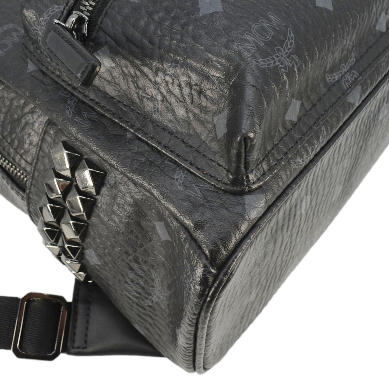 MCM Stark Side Stud Visetos Canvas Backpack Bag Black
