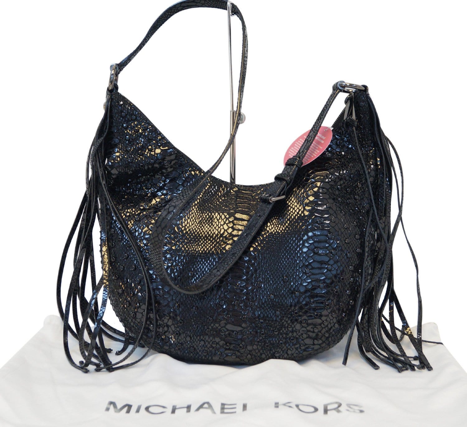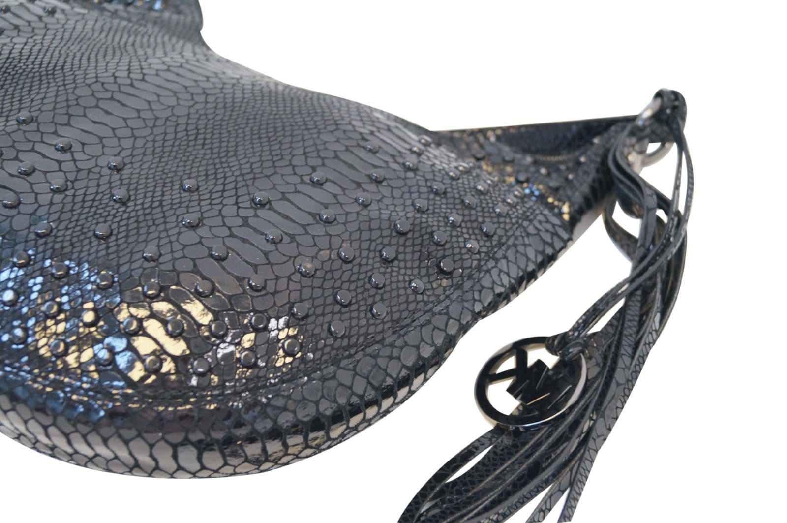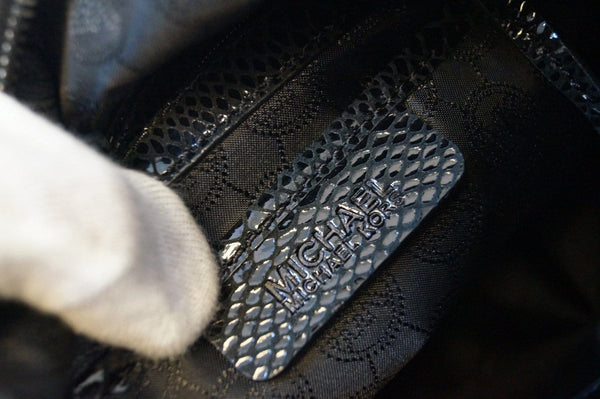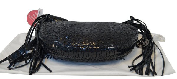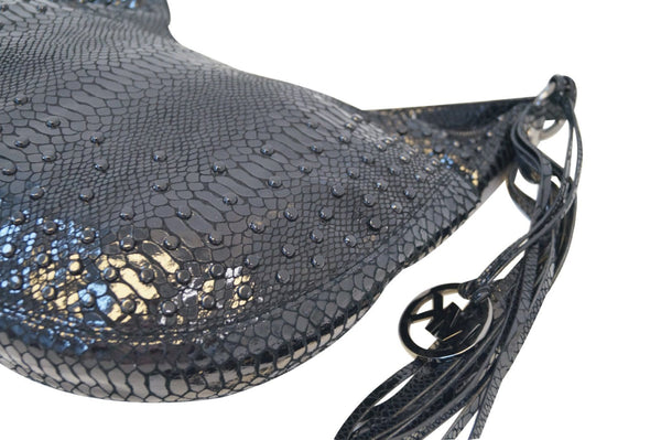 MICHAEL KORS Medium Rhea Crystal Black Slouchy Patent Python Crossbody Bag