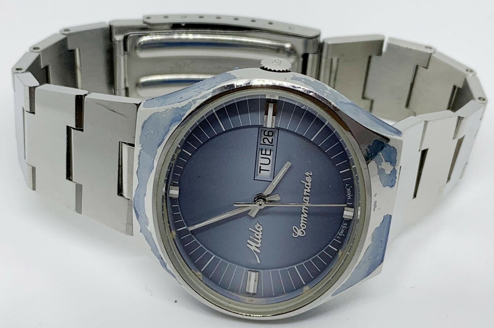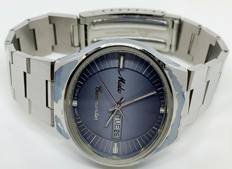 MIDO Commander 1980 Day Date Men's Stainless Steel Watch Light Blue Dial 41MM
