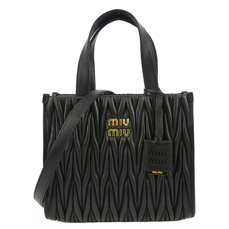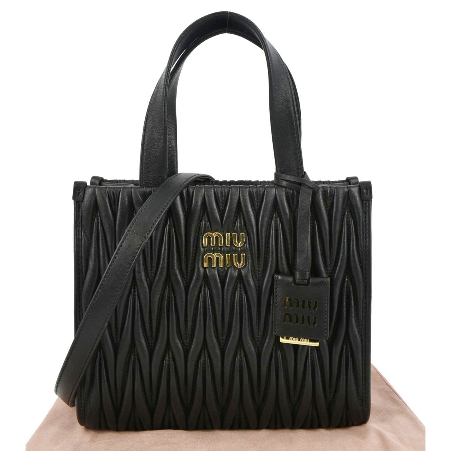 MIU MIU Nappa Matelasse Leather Tote Shoulder Bag Black