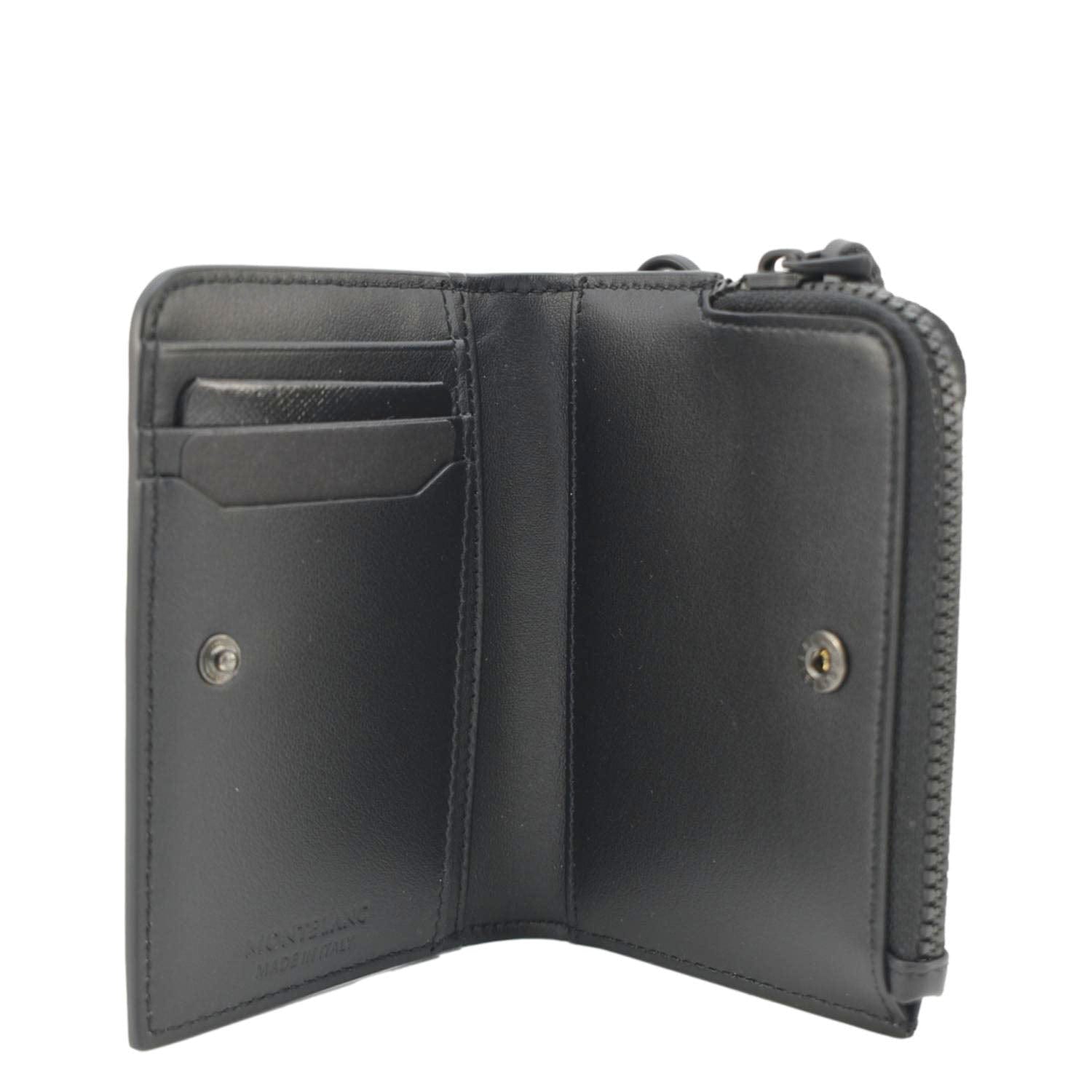 The Montblanc Zip Around Leather Men's Wallet in black combines elegance with functionality, featuring a secure zip closure and multiple compartments. Its iconic Montblanc logo and premium leather make it a sophisticated choice for everyday use.