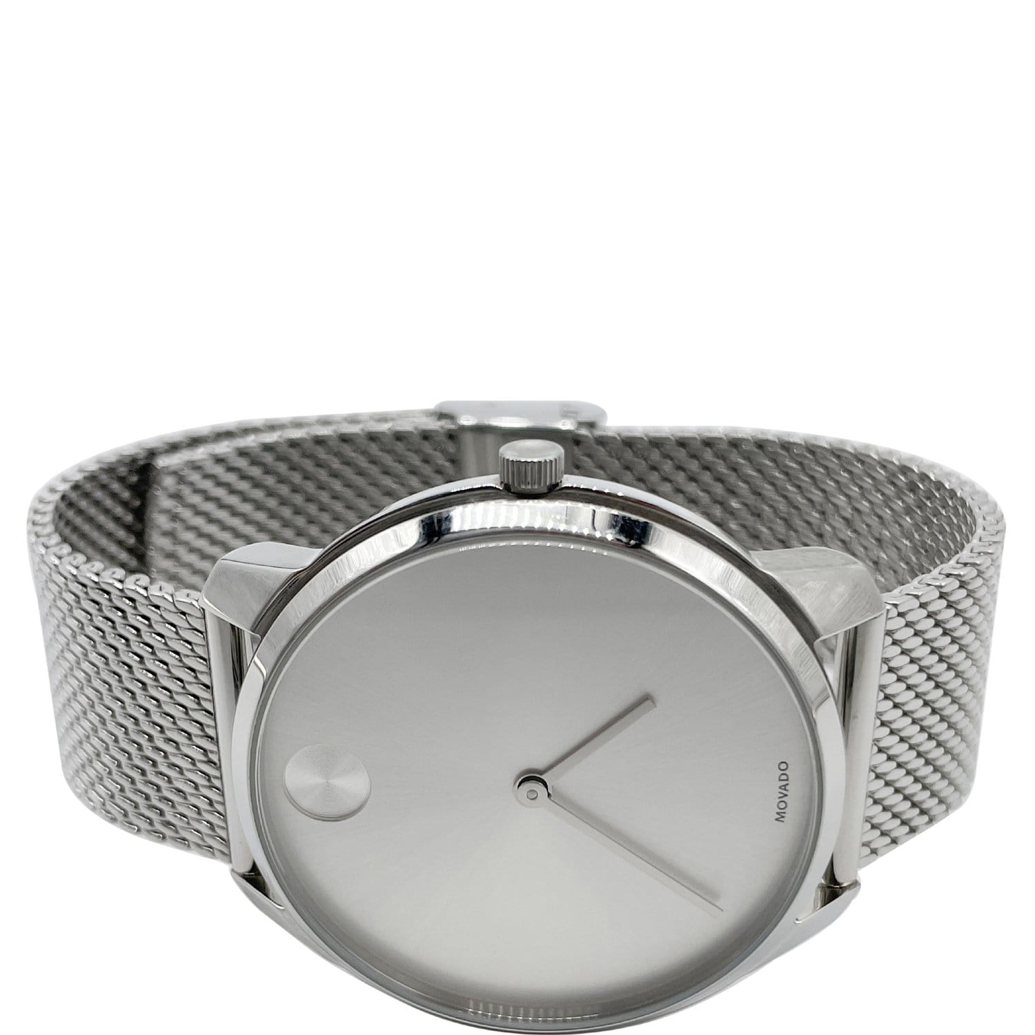 MOVADO Bold Thin Swiss Stain Steel Mesh Band Watch Grey Dial 42MM