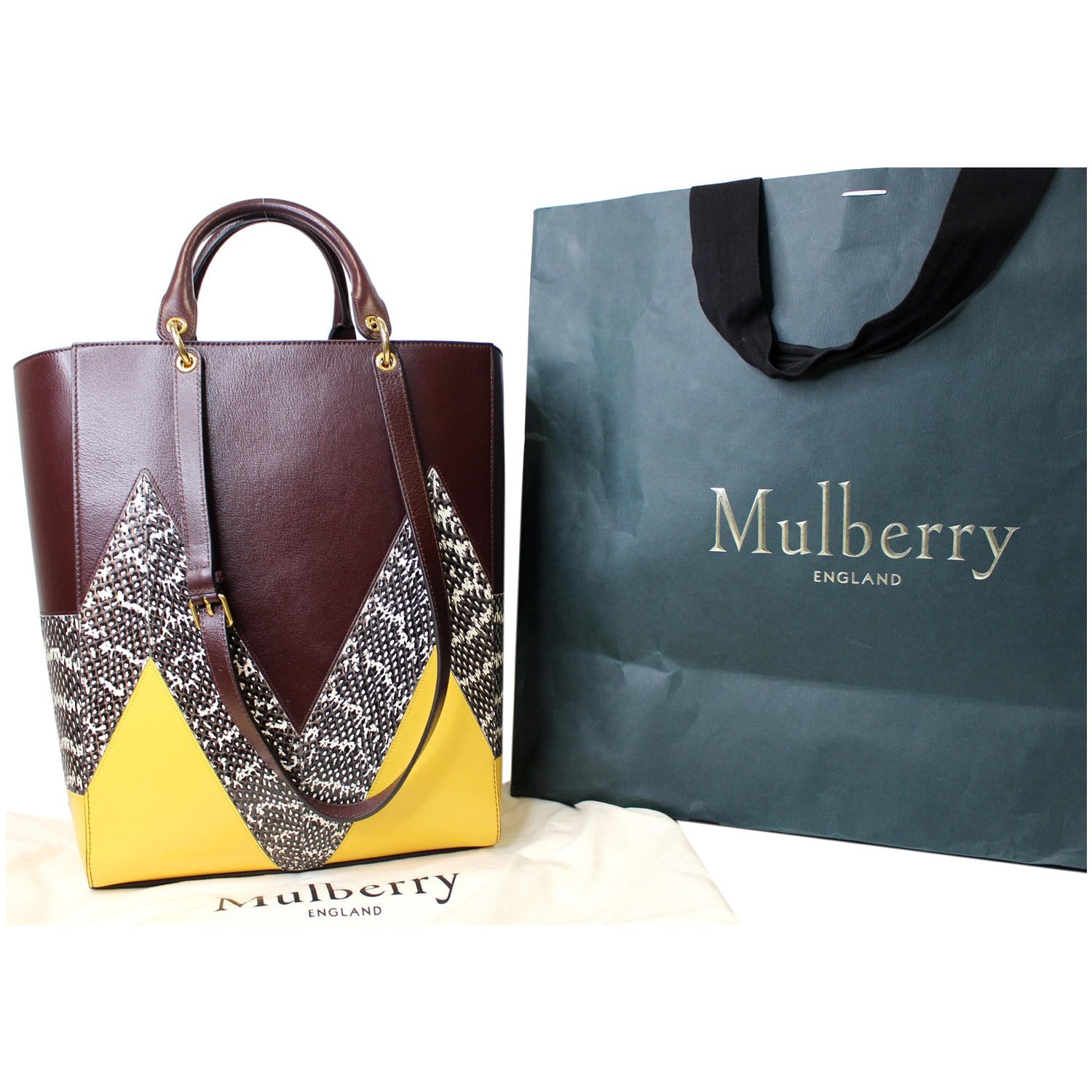MULBERRY Large Maple "M" Snakeskin Oxblood Smooth Calf Tote Bag Burgundy