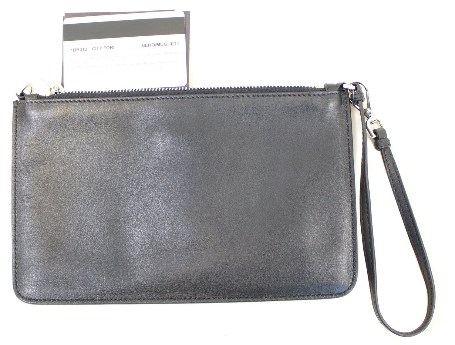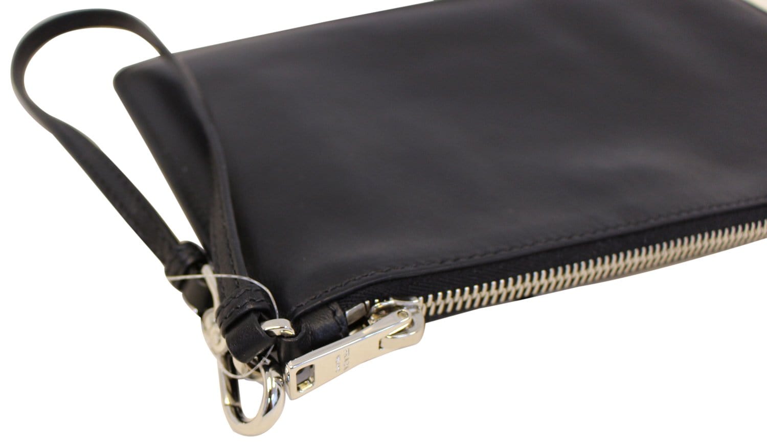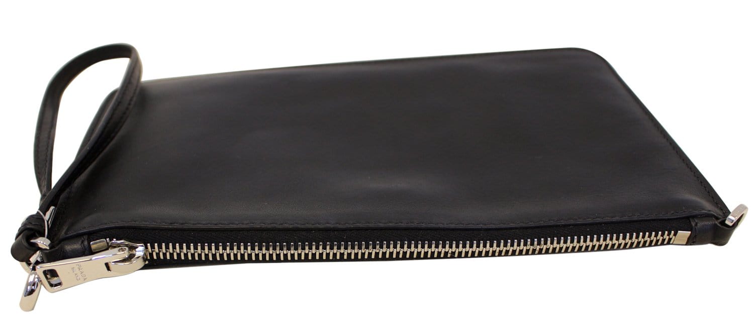 PRADA Black Leather Logo Plaque Wristlet Clutch Bag