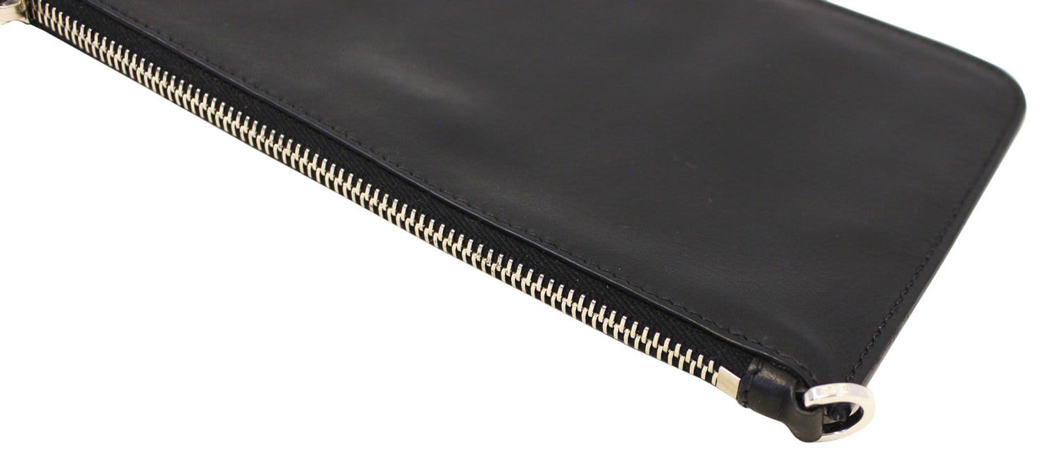 Black Leather Logo Plaque Wristlet Clutch Bag