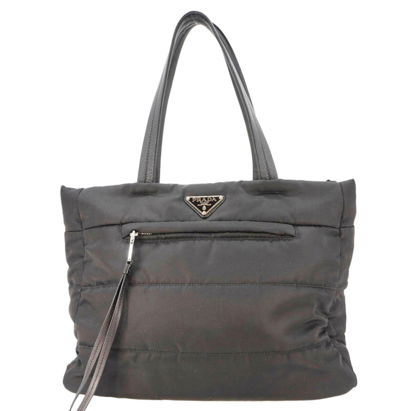 The Prada Tessuto Nylon Bomber Shopping Tote in black is a modern and functional accessory. Crafted from durable nylon with leather accents, it features a spacious design and sleek silhouette, perfect for everyday versatility and style.