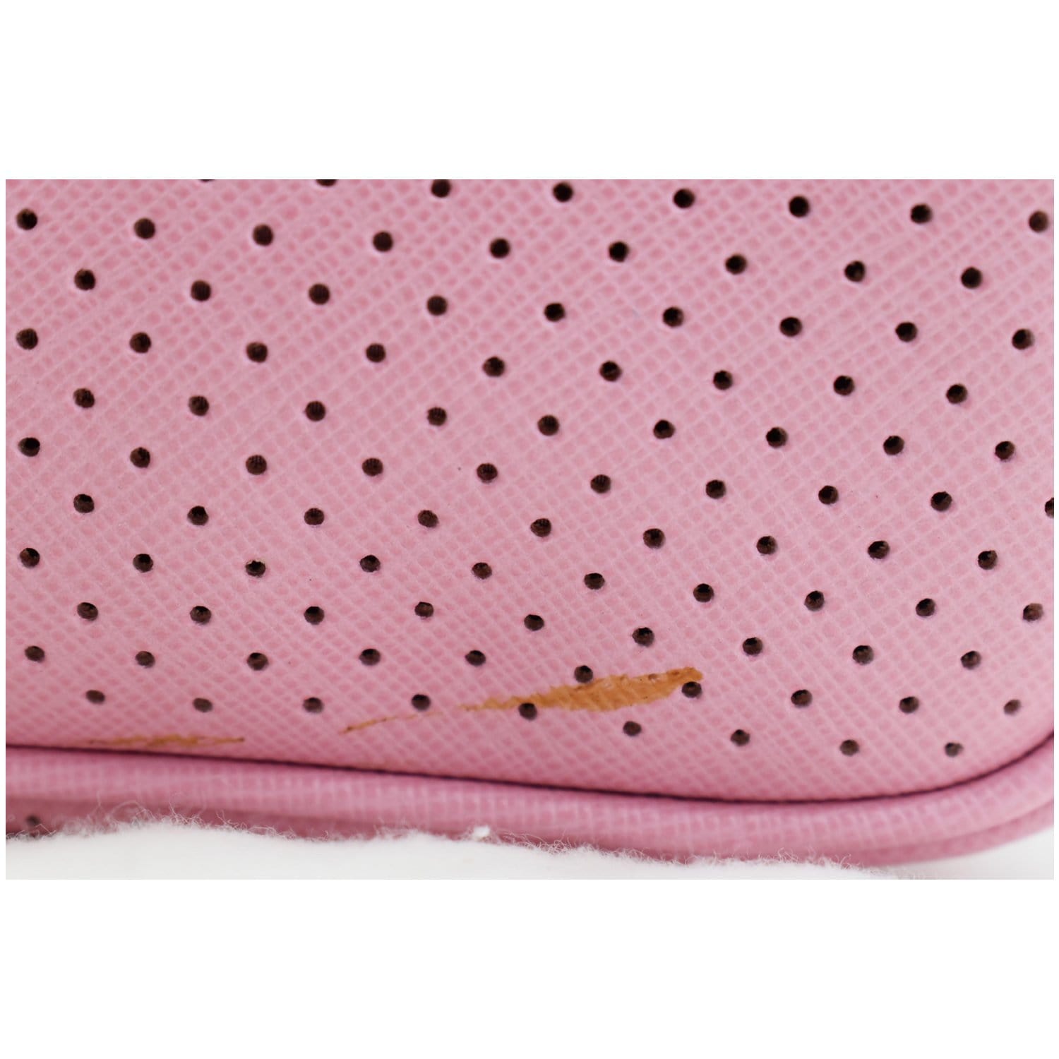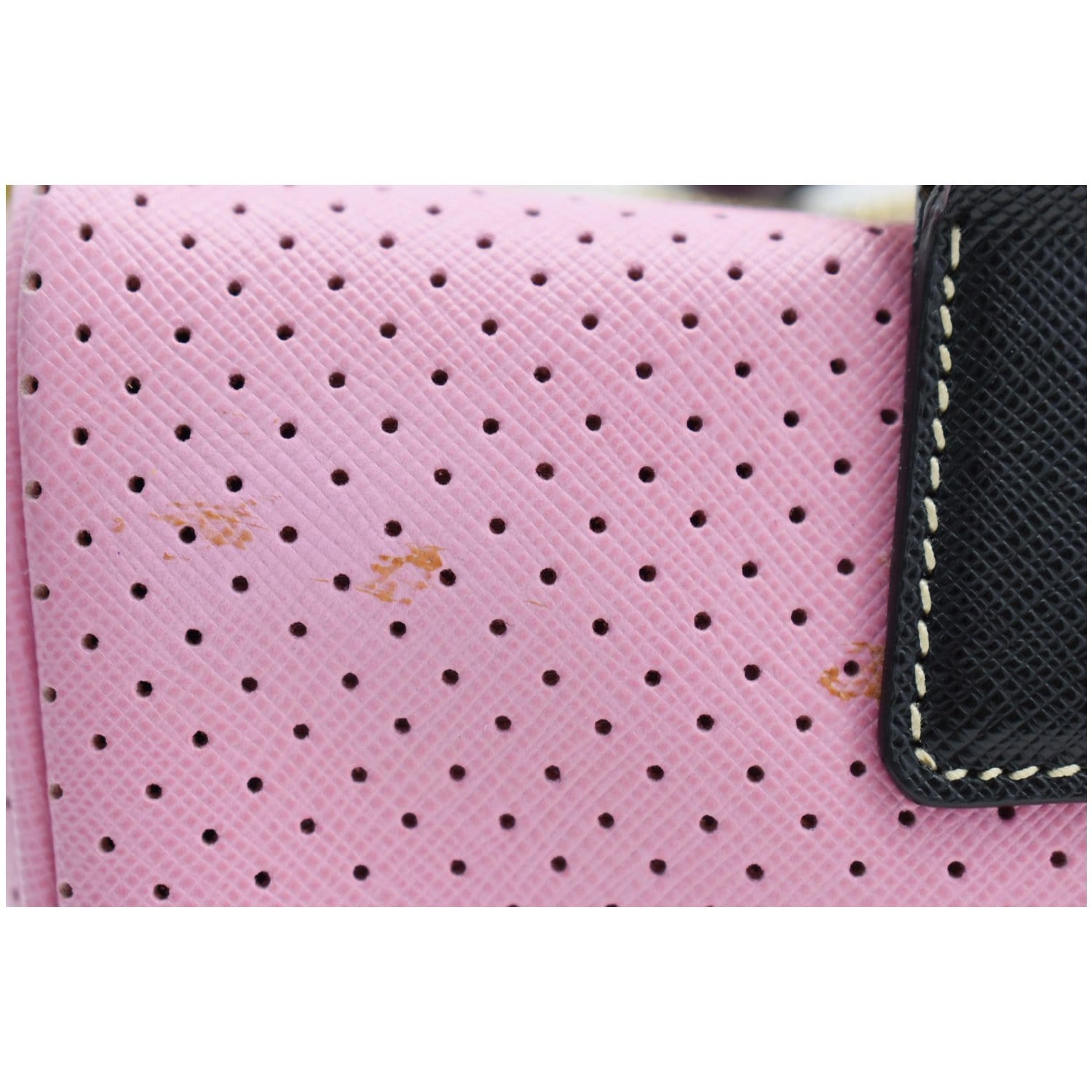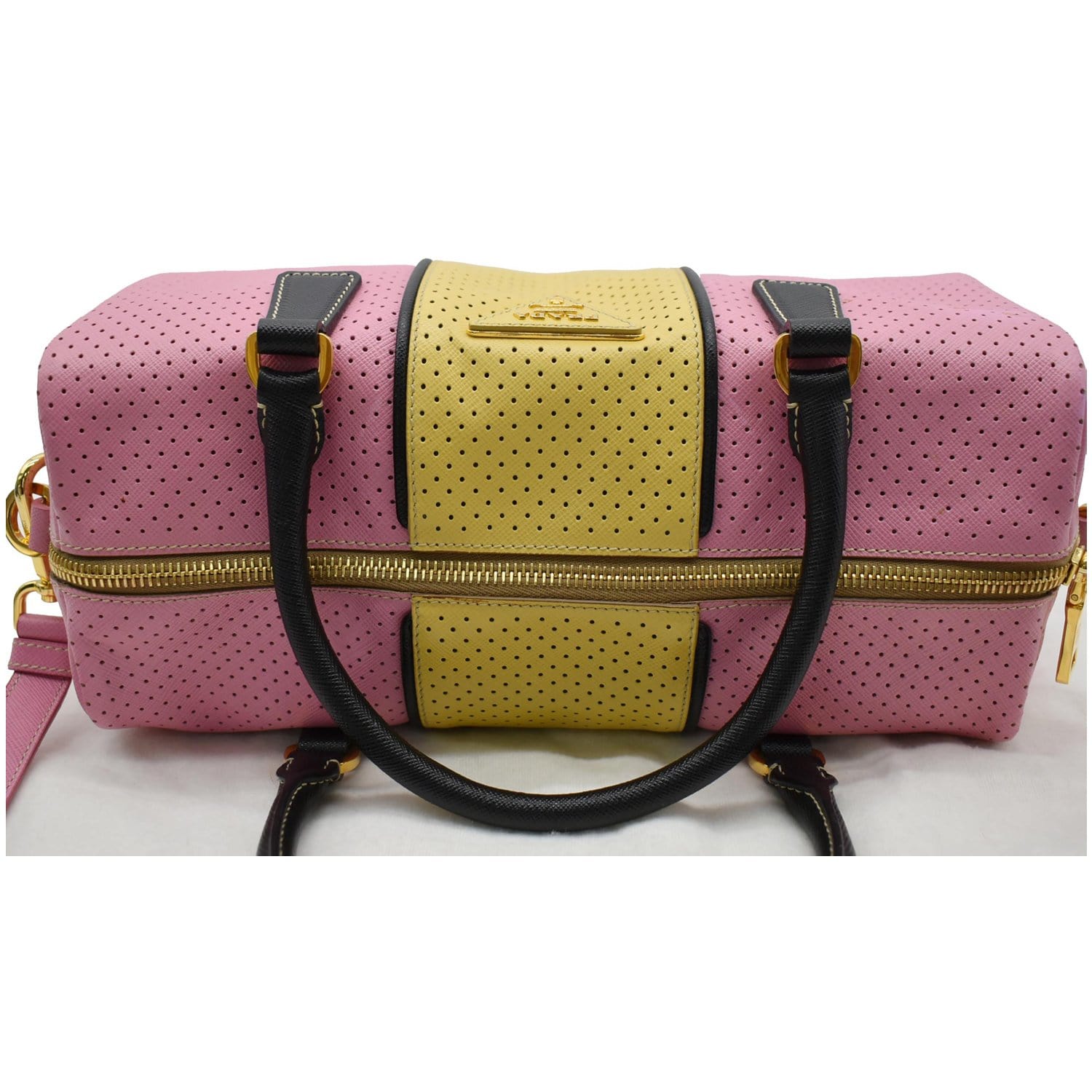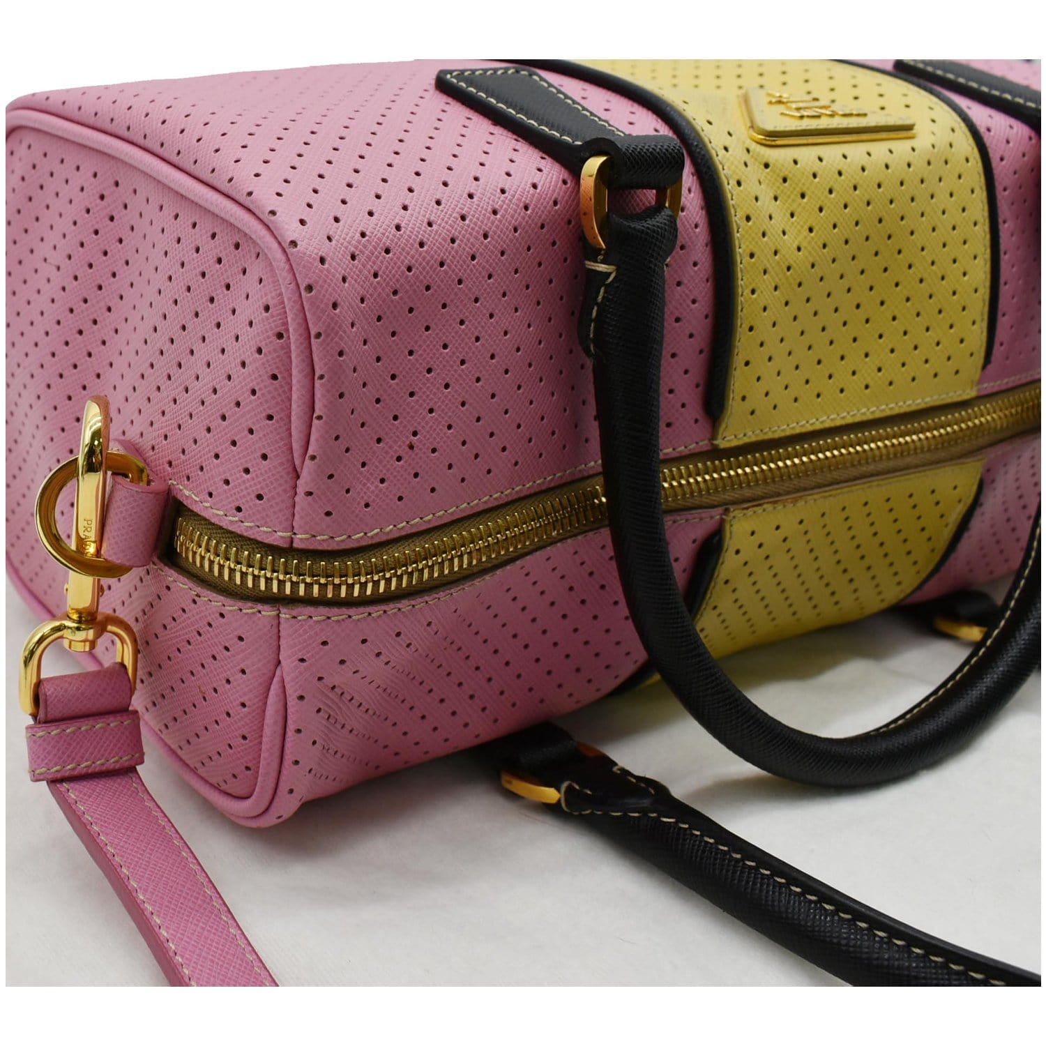 PRADA Bowling Perforated Saffiano Leather Satchel Bag Pink/Yellow
