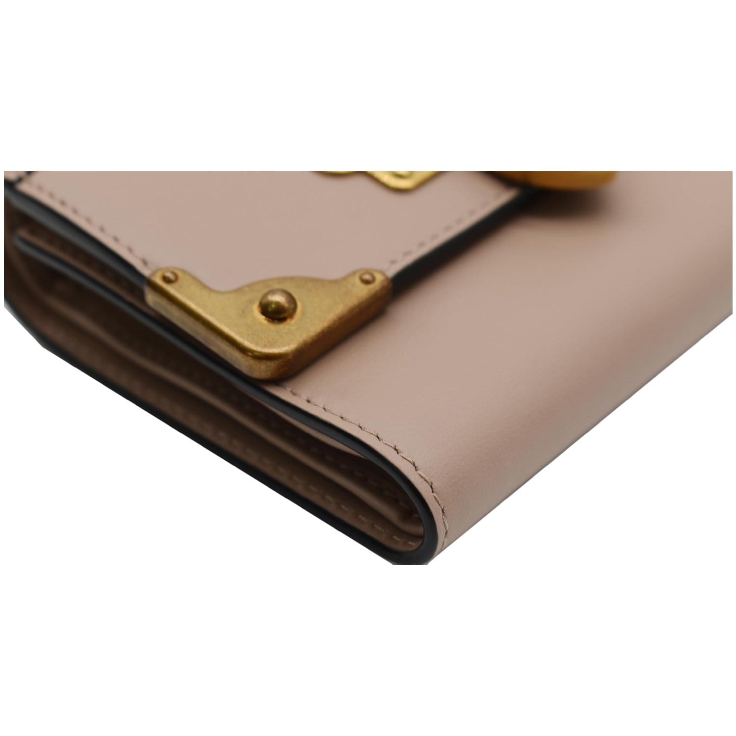 PRADA Cahier Saffiano French Compact Flap Wallet Beige