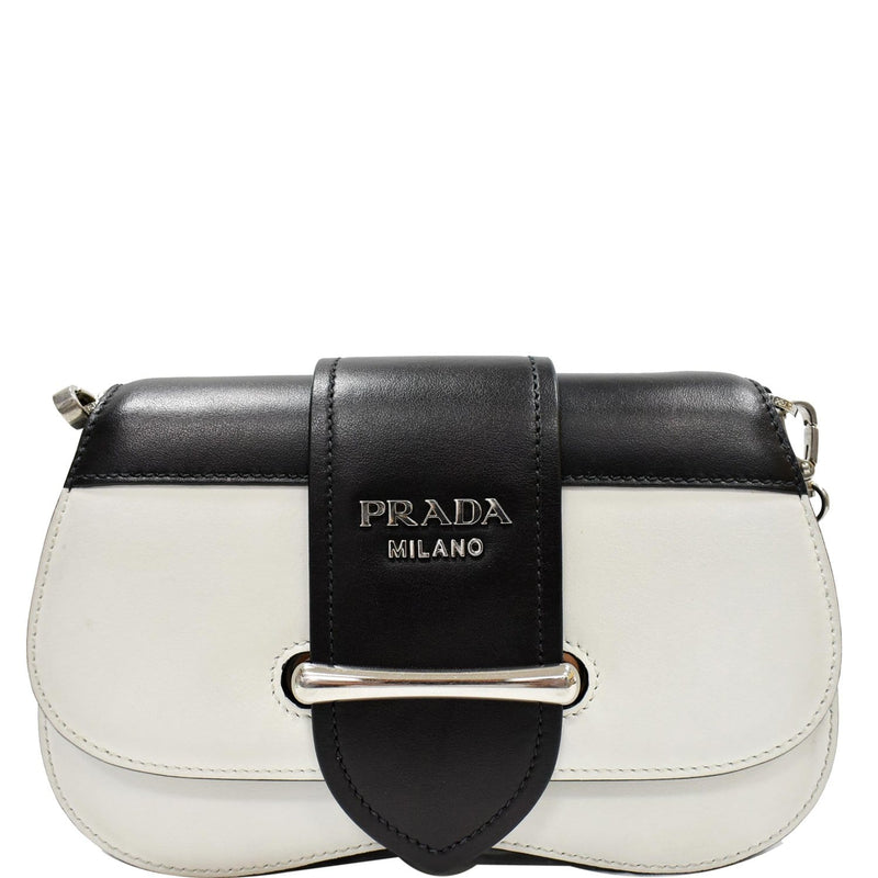 PRADA City Sidonie Small Leather Crossbody Bag Black/White - Last Call