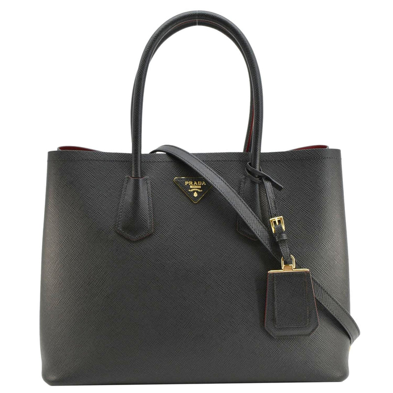 PRADA Double Handle Saffiano Leather Tote Bag Black
