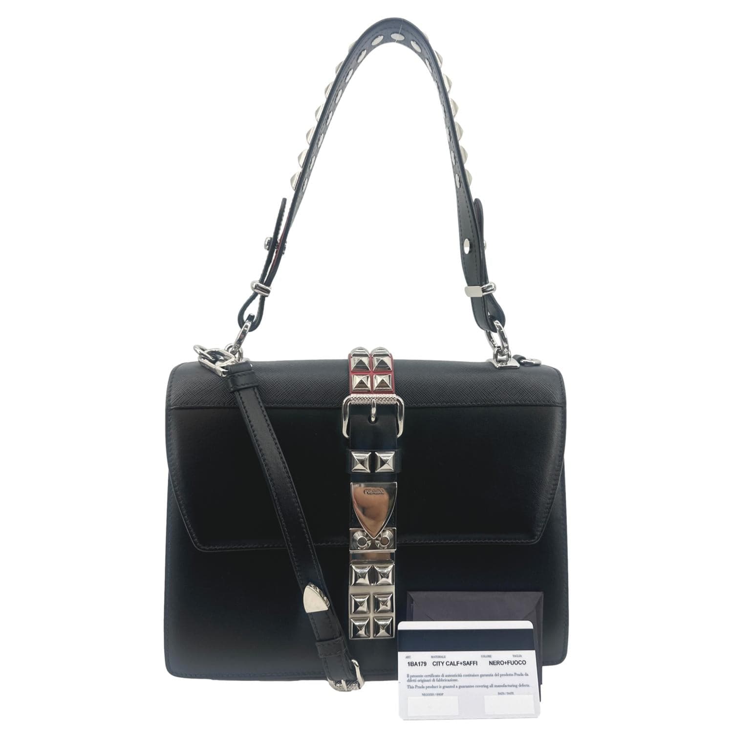 PRADA Elektra Calf Saffiano Leather Shoulder Bag Black