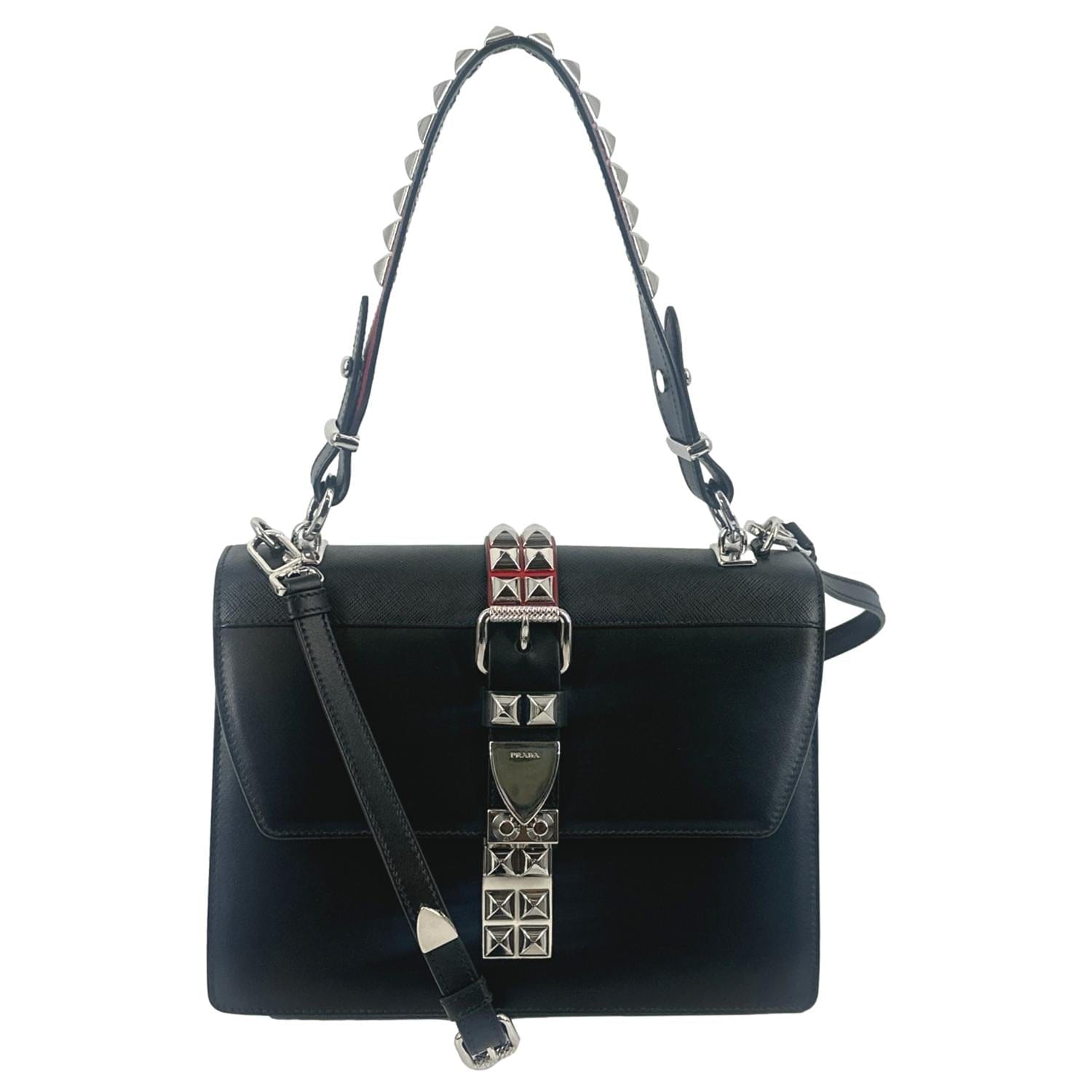 Prada Elektra Calf Saffiano Leather Shoulder Bag Black
