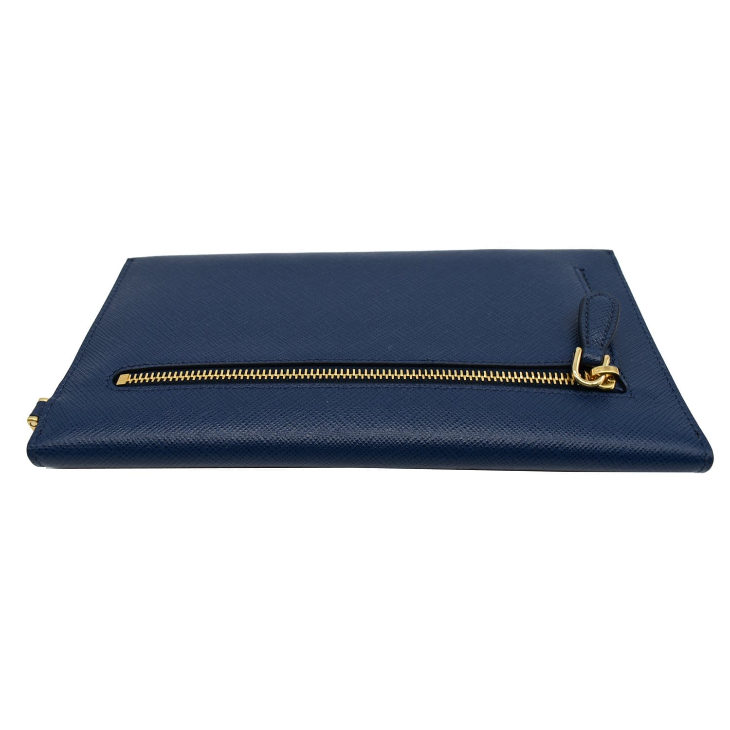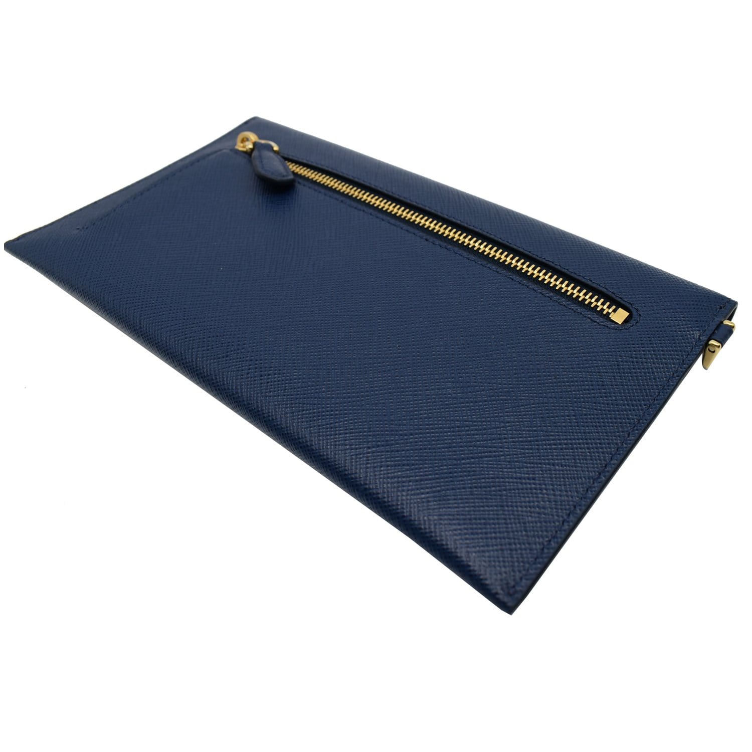 PRADA Envelope Leather Chain Clutch Blue 1MF002
