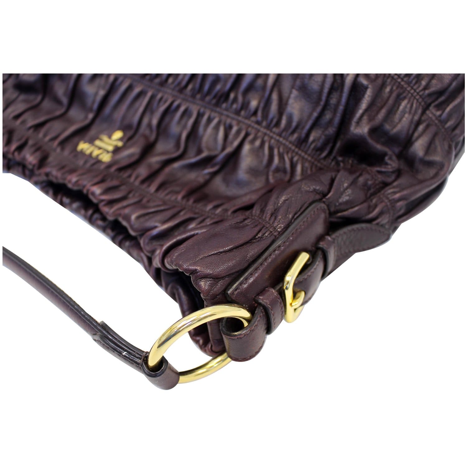 PRADA Gaufre Nappa Leather Hobo Bag Brown