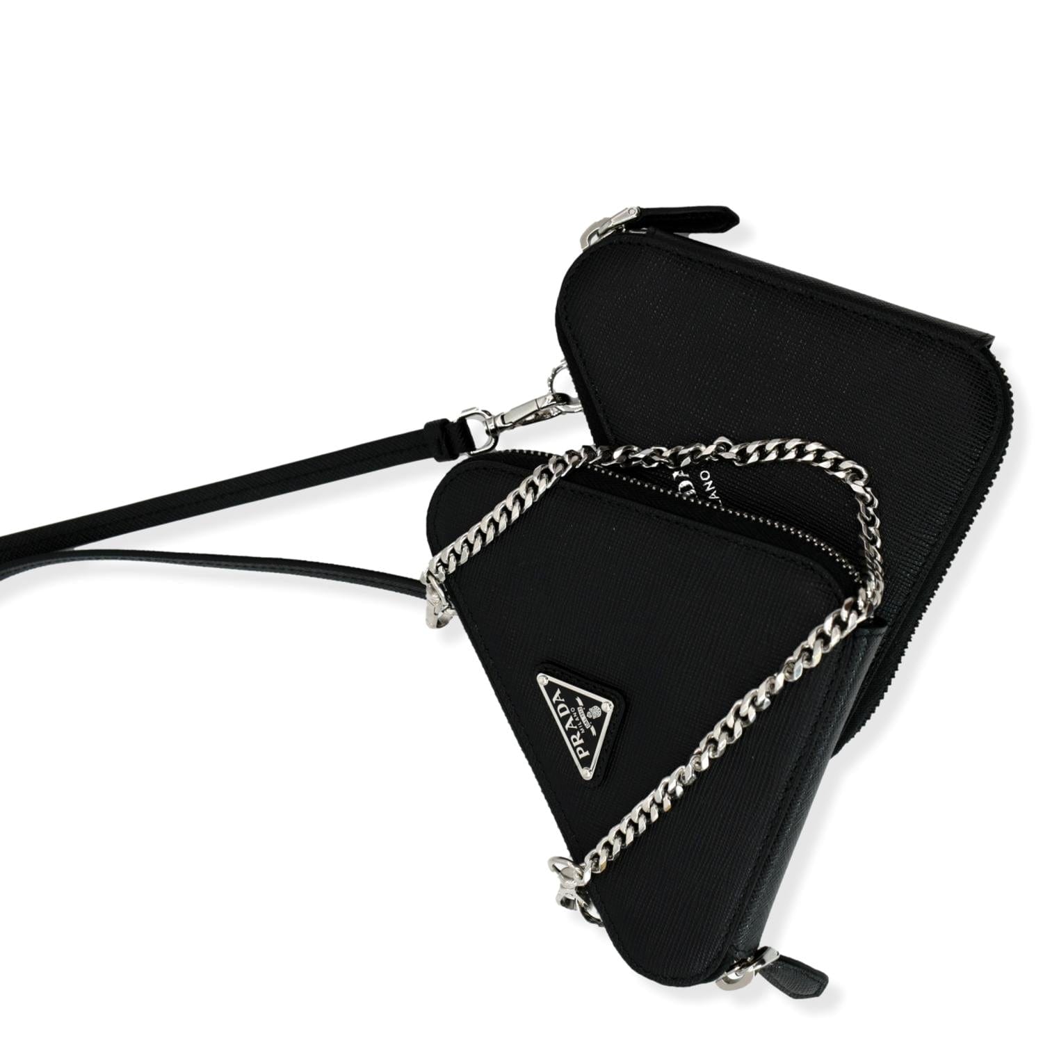 PRADA Mini Saffiano Leather Pouch Crossbody Bag Black