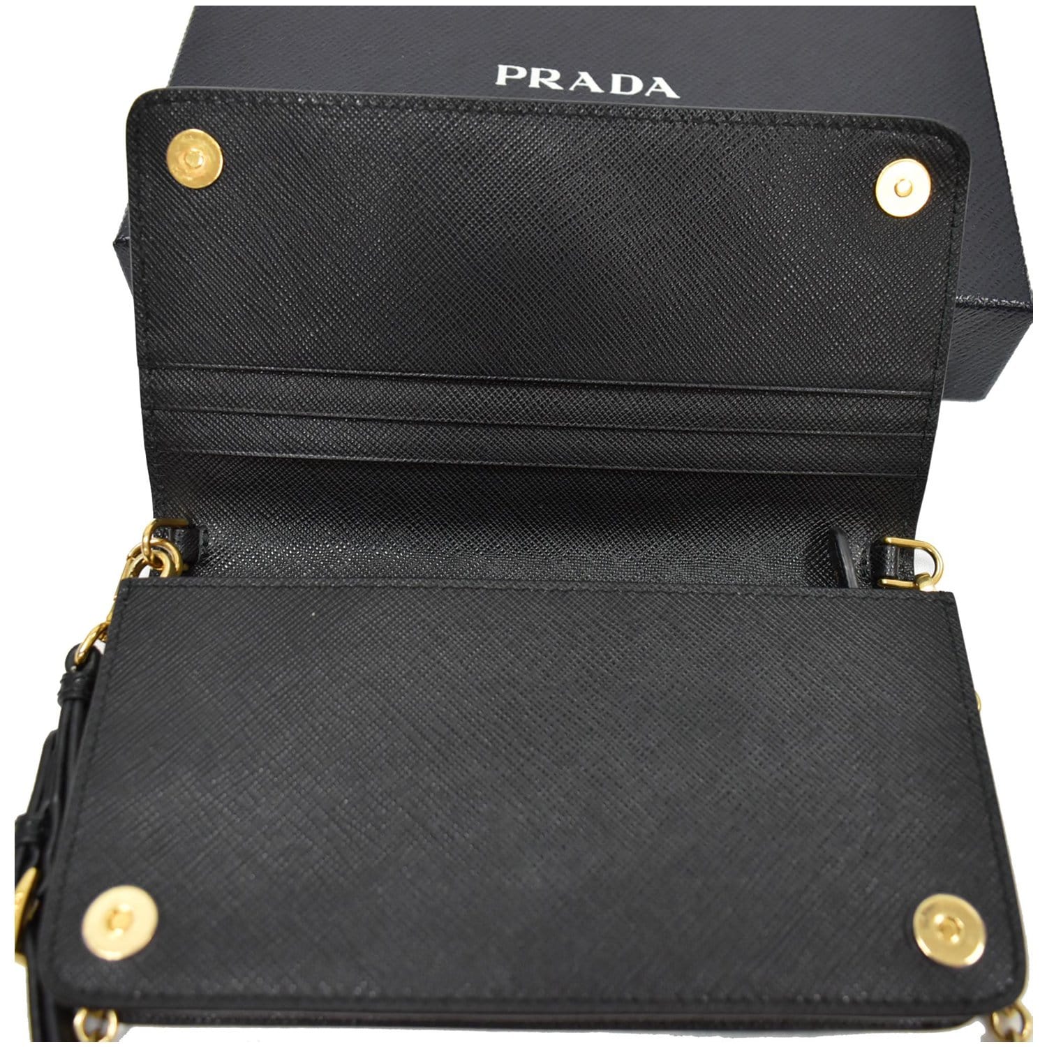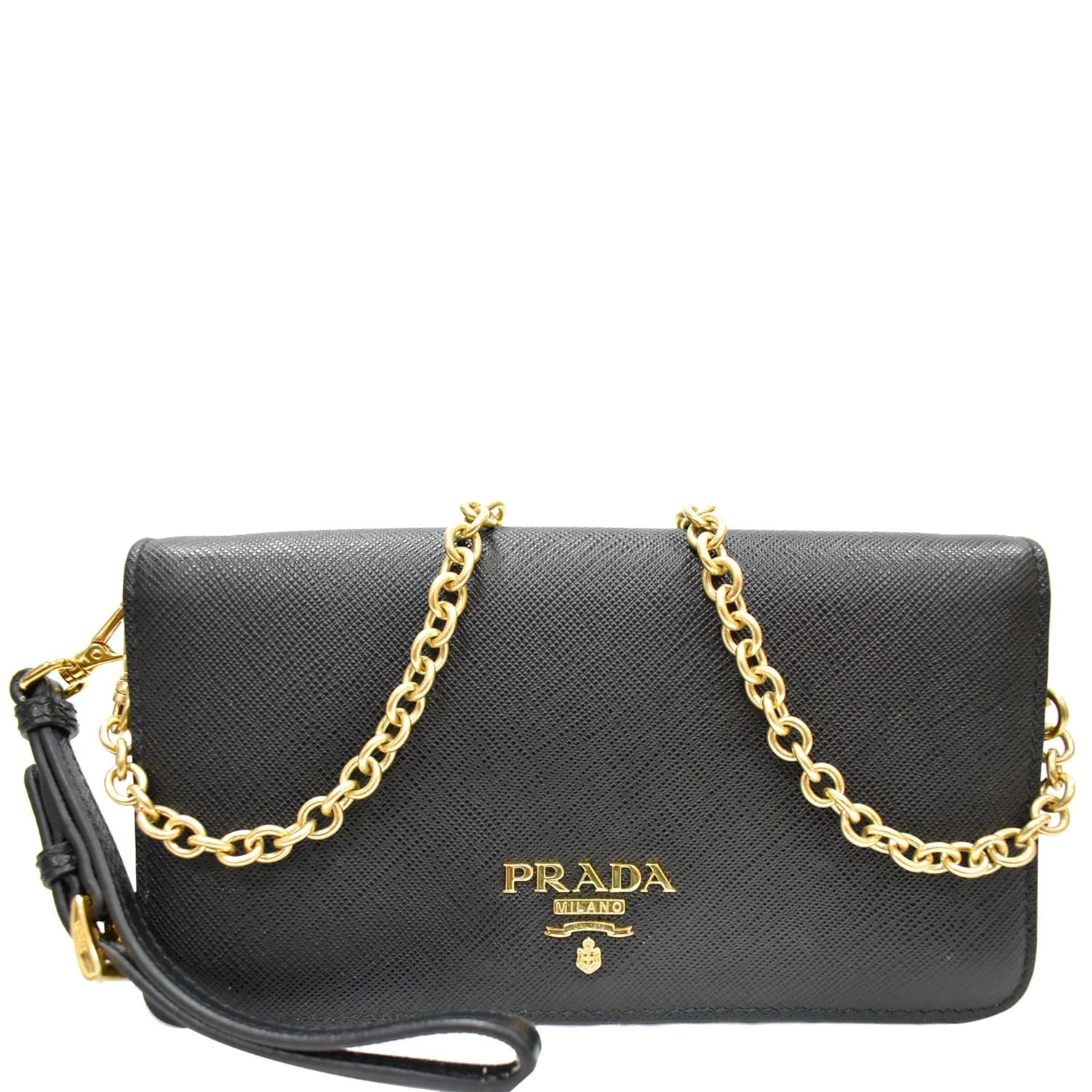 Prada Mini Saffiano Leather Chain Shoulder Bag Black