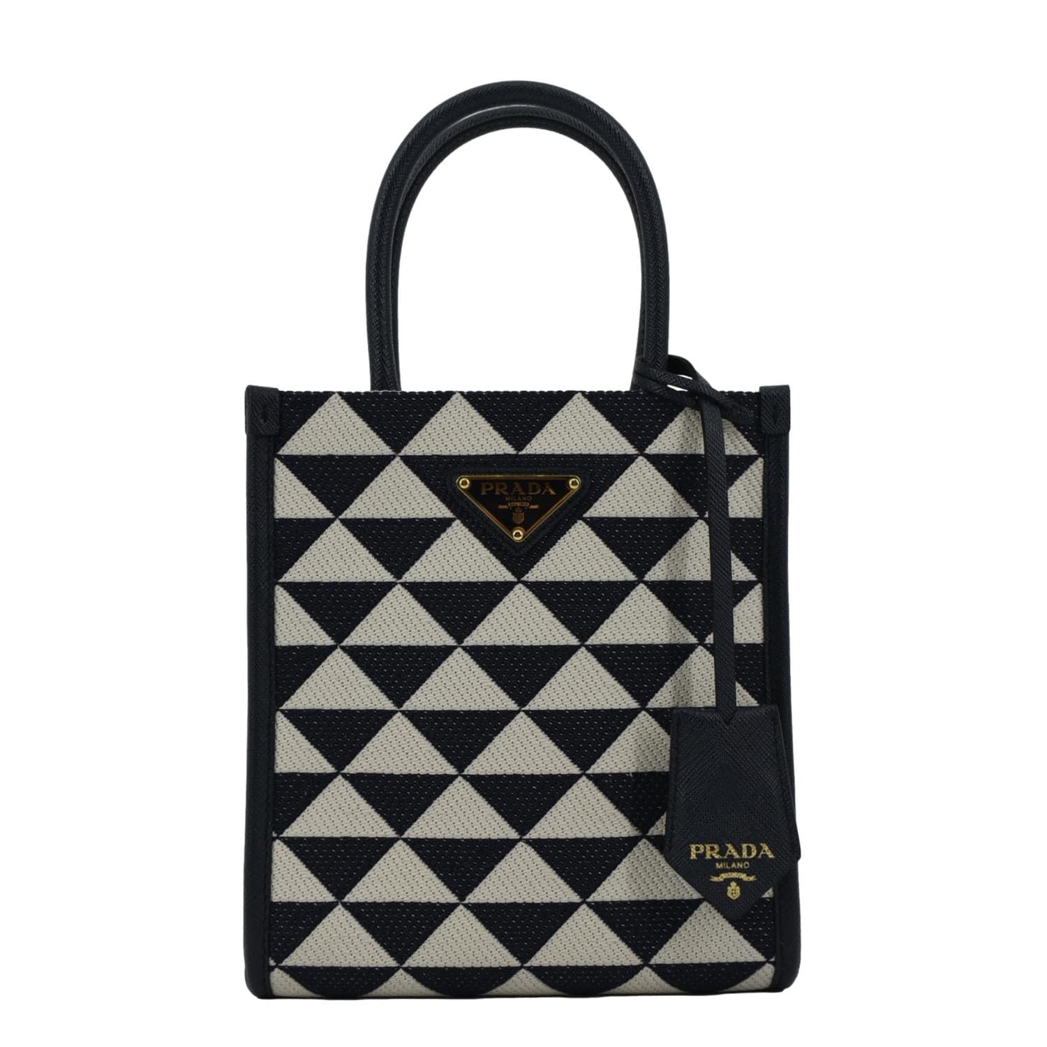 PRADA Triangolo Mini Jacquard Symbole Tote Crossbody Bag Navy Blue