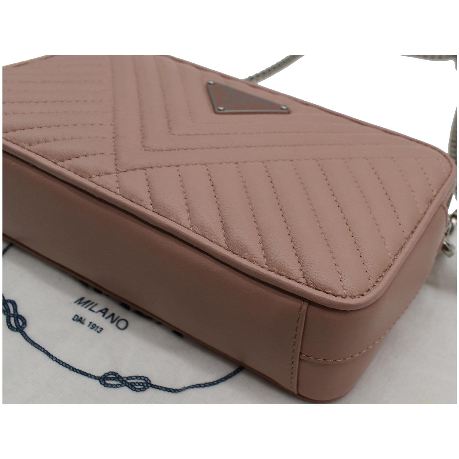 PRADA Nappa Mini Impunture Bandoliera Chain Leather Crossbody Bag Orchidea