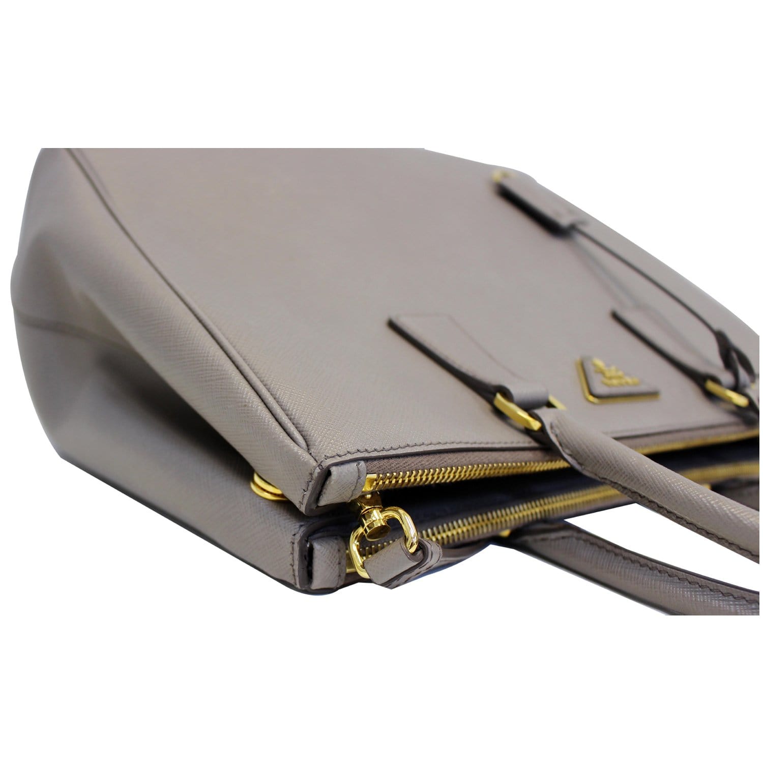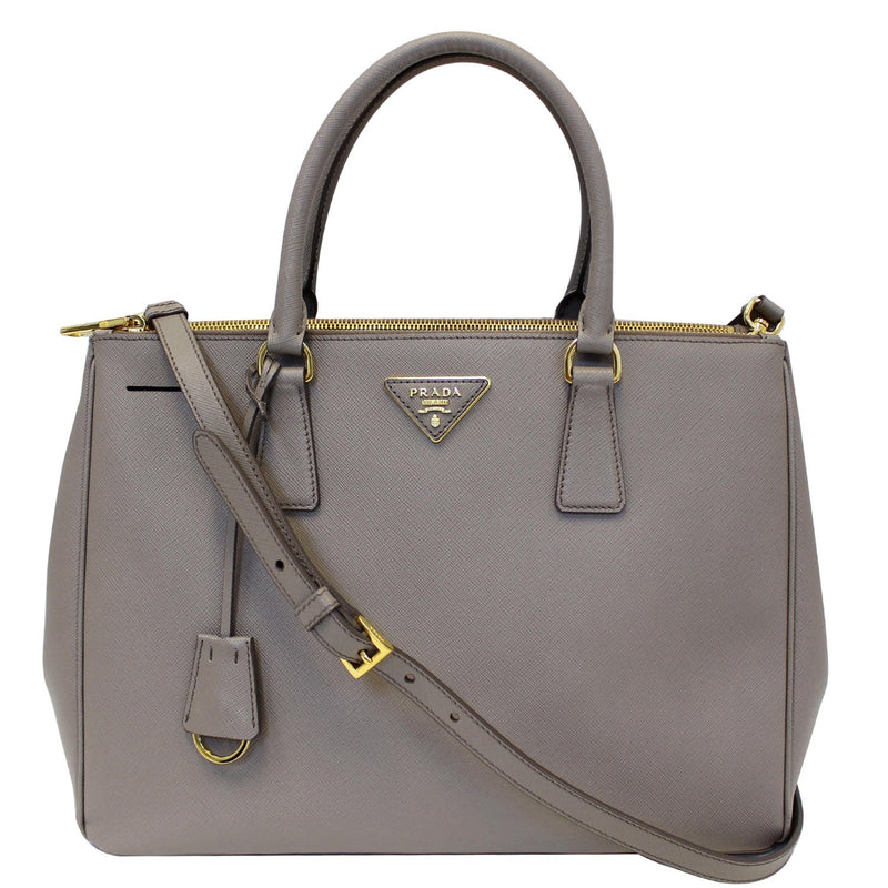 PRADA Saffiano Double Zip Executive Tote Shoulder Bag Grey