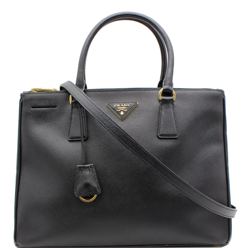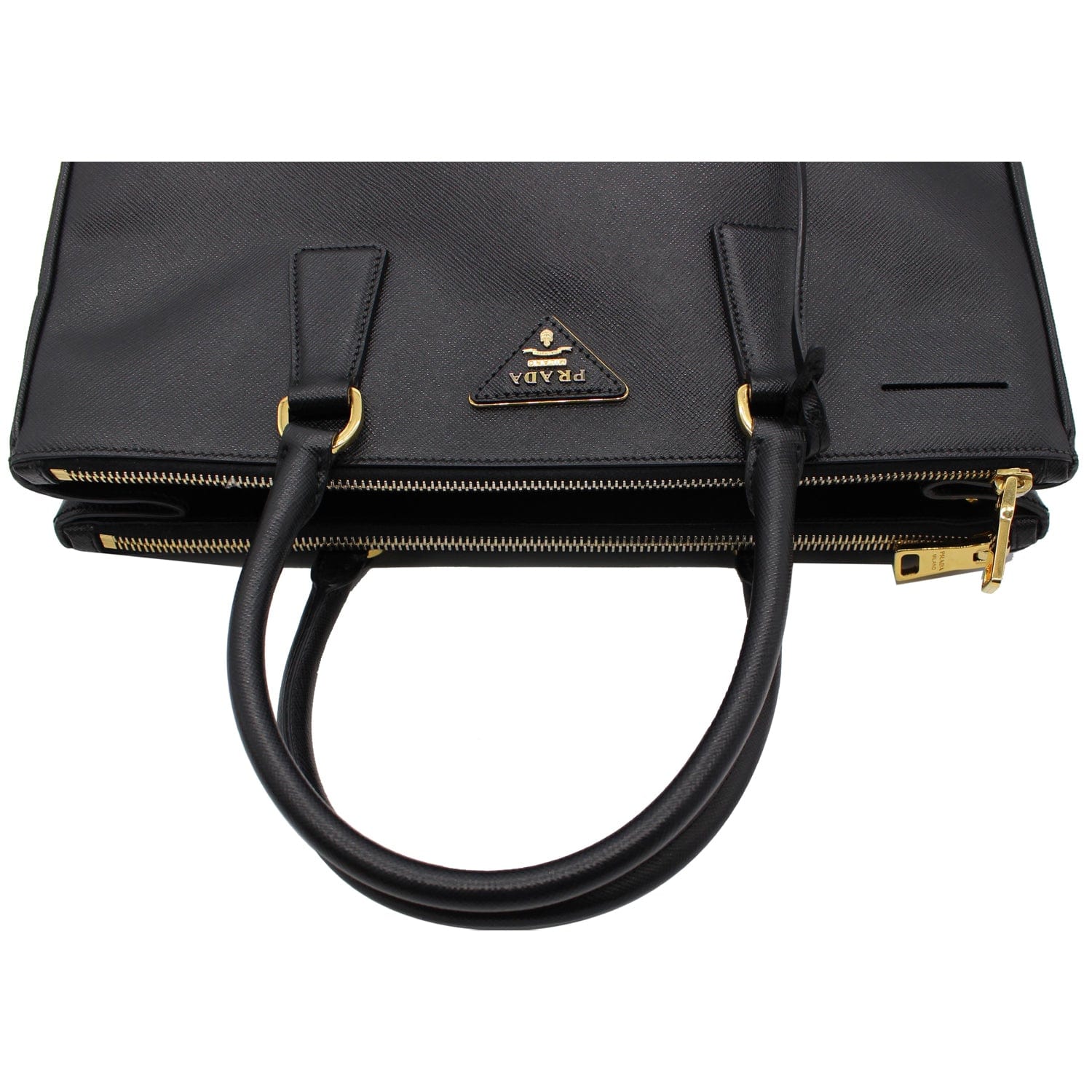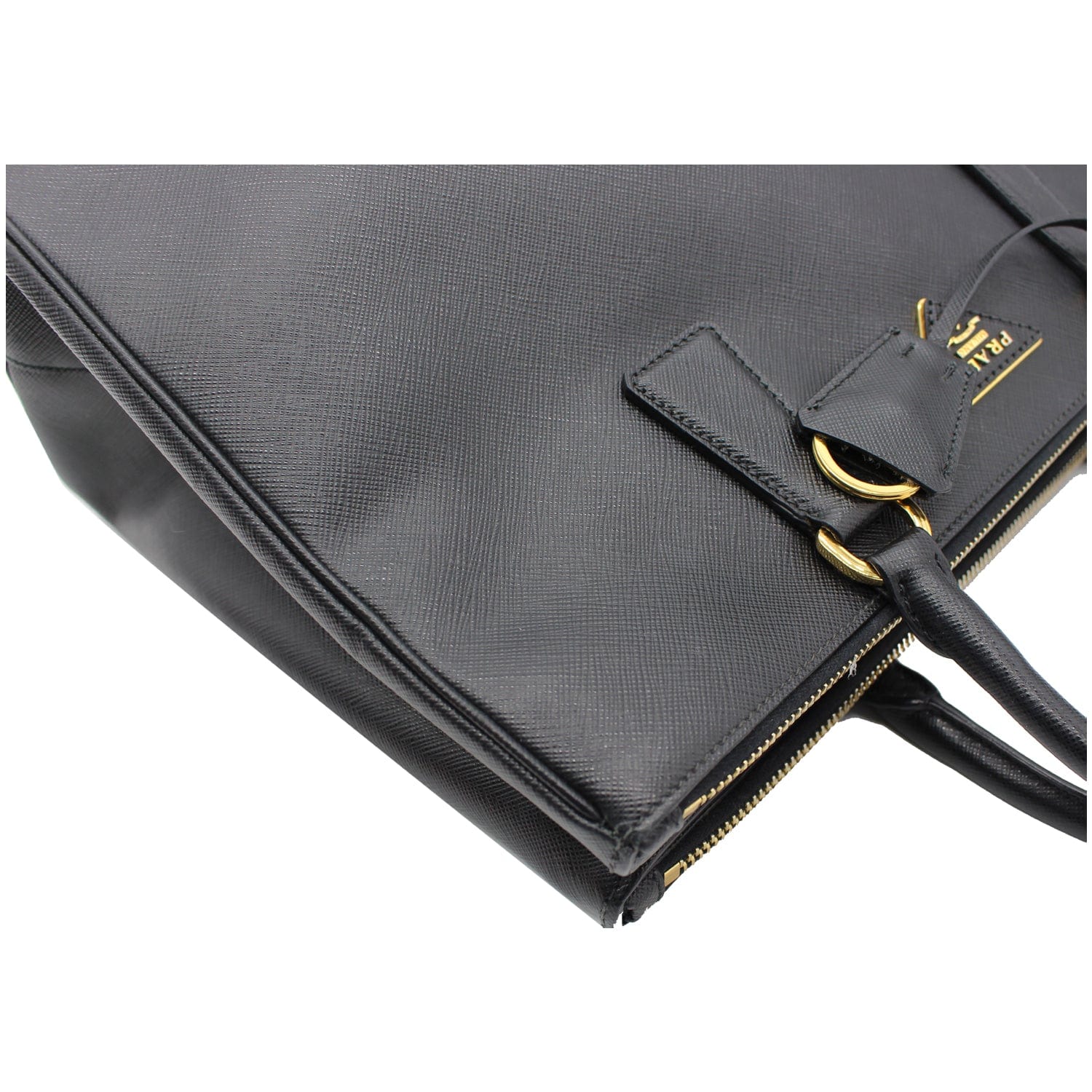 PRADA Saffiano Lux Double-Zip Leather Tote Shoulder Bag Black