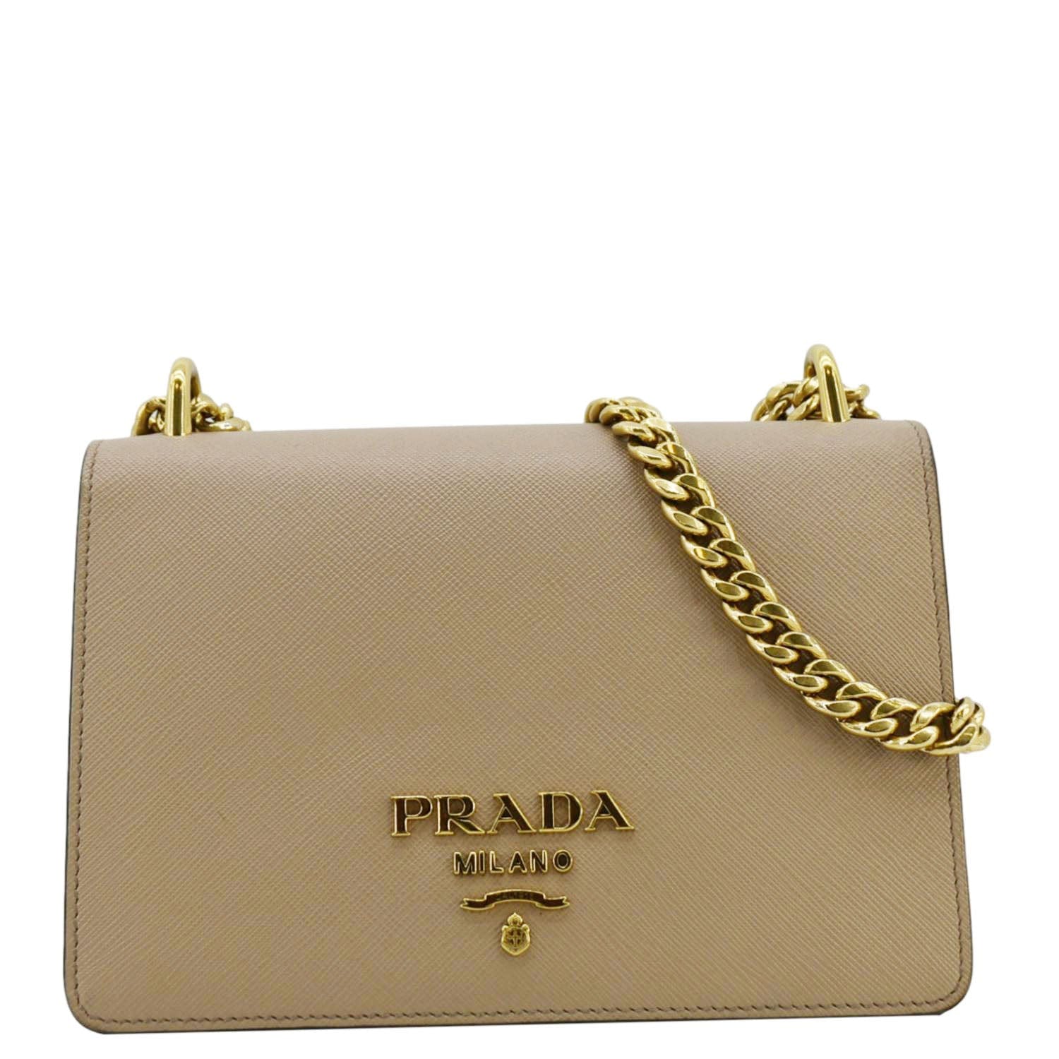 PRADA Soft Saffiano Leather Chain Crossbody Bag Beige
