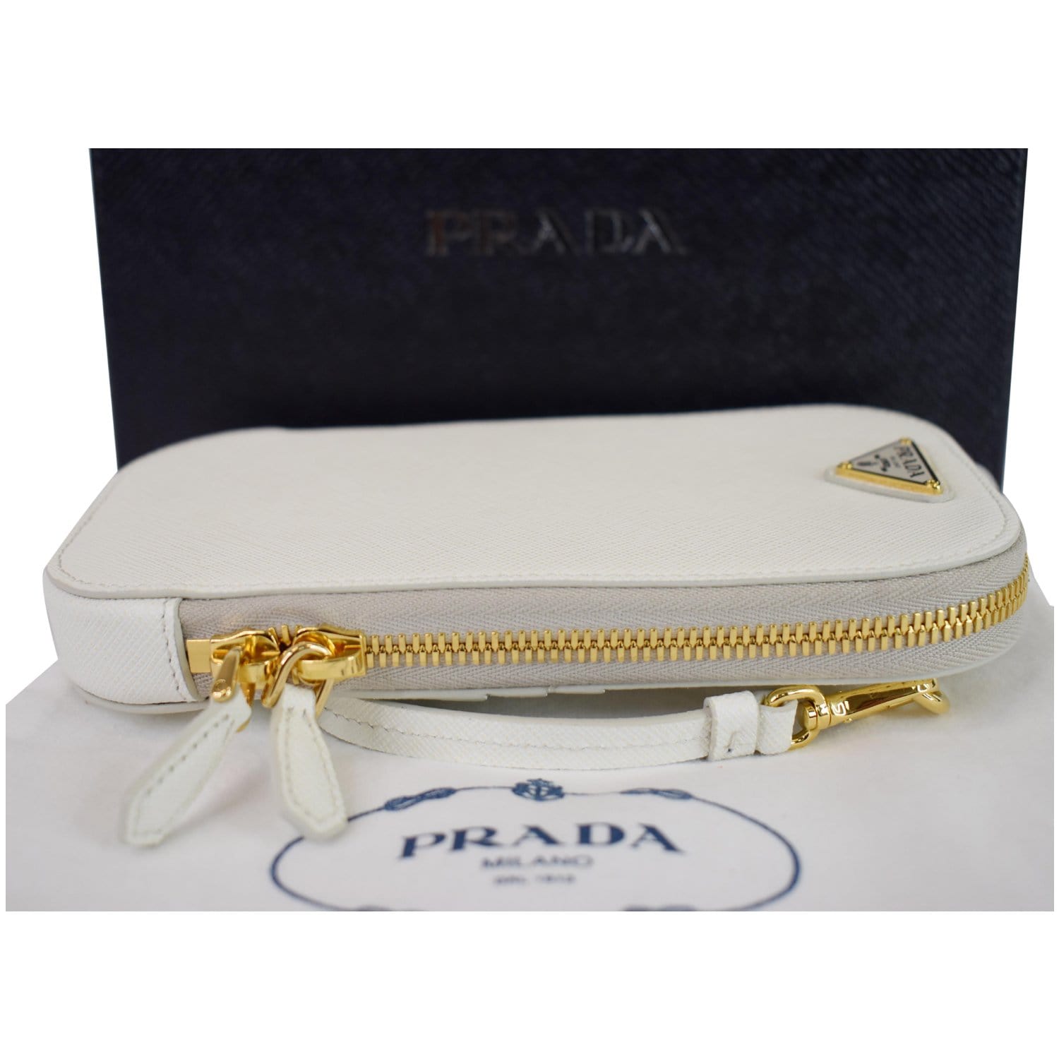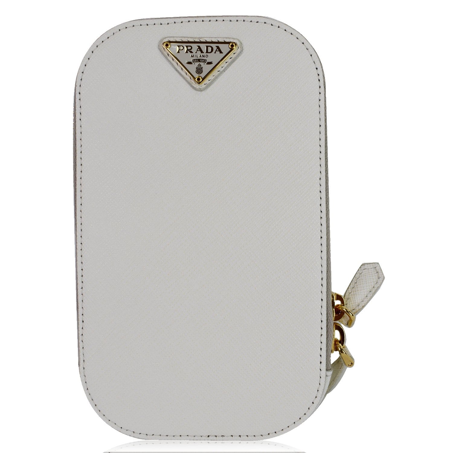 PRADA Saffiano Triangle Leather Crossbody Phone Pouch Bag White