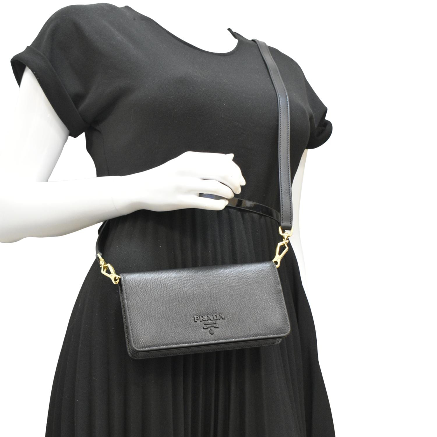 PRADA Saffiano Leather Crossbody Wallet Black