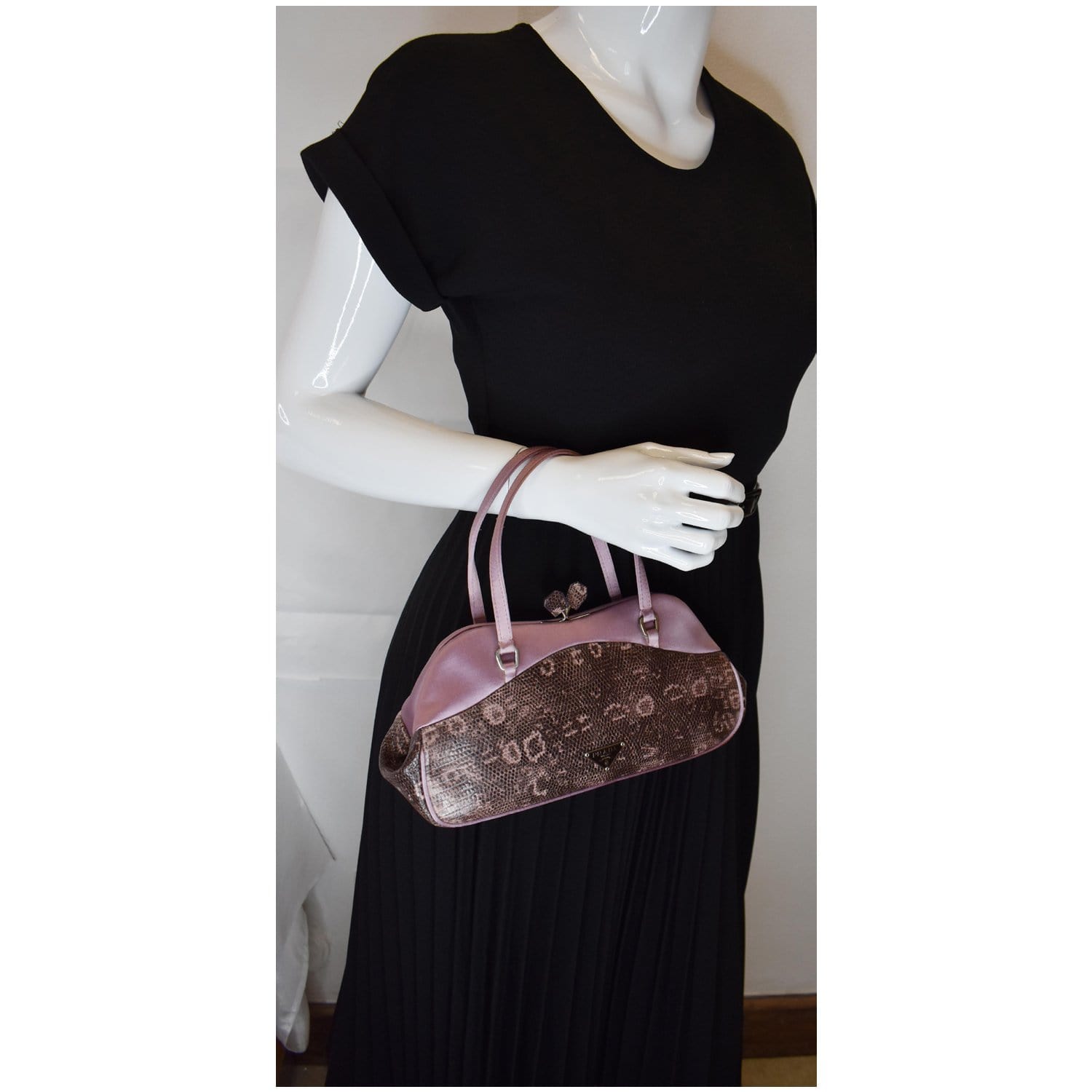 - Material: Lizard skin and satin trim