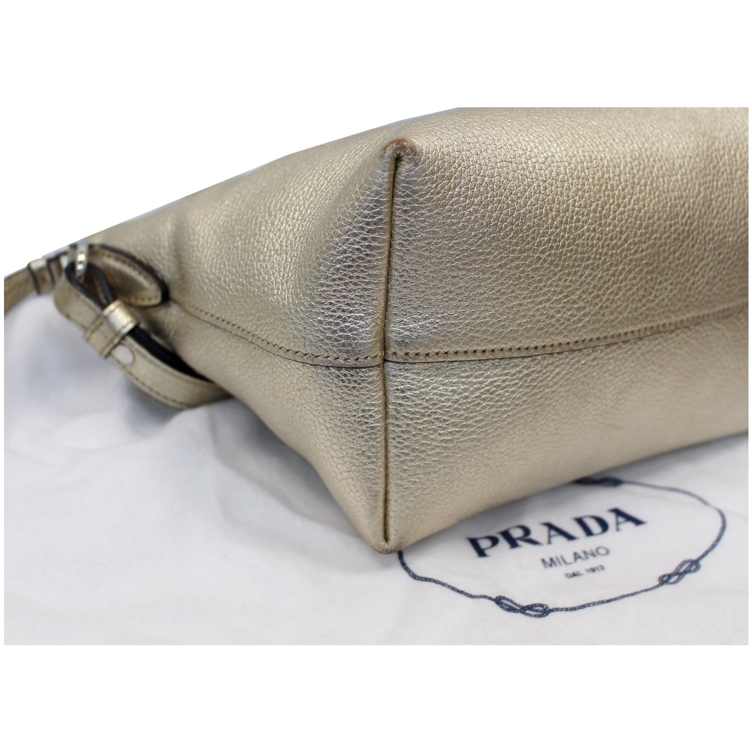 PRADA Small Daino Metallic Leather Tote Shoulder Bag Silver - Last Call