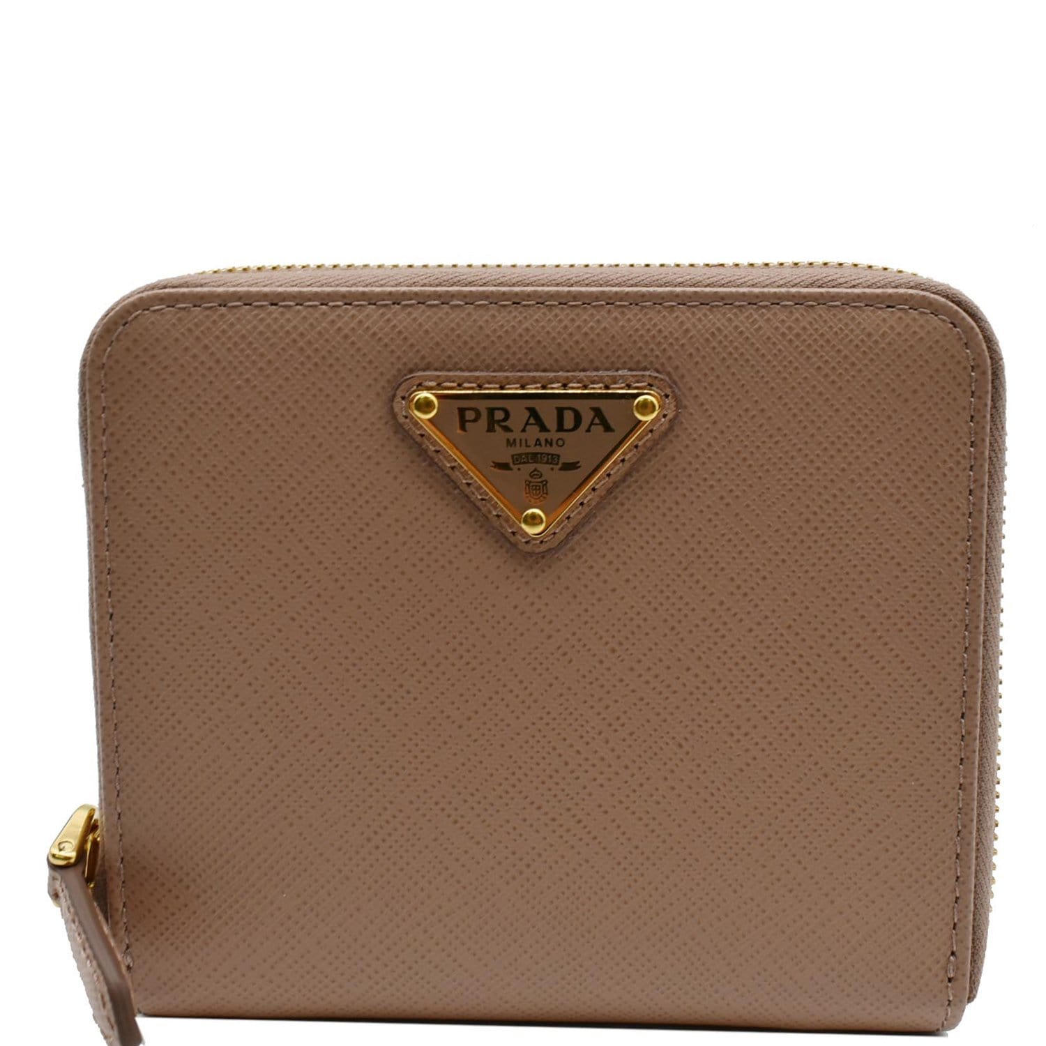 Small Saffiano Leather Zip Around Wallet Cameo Beige