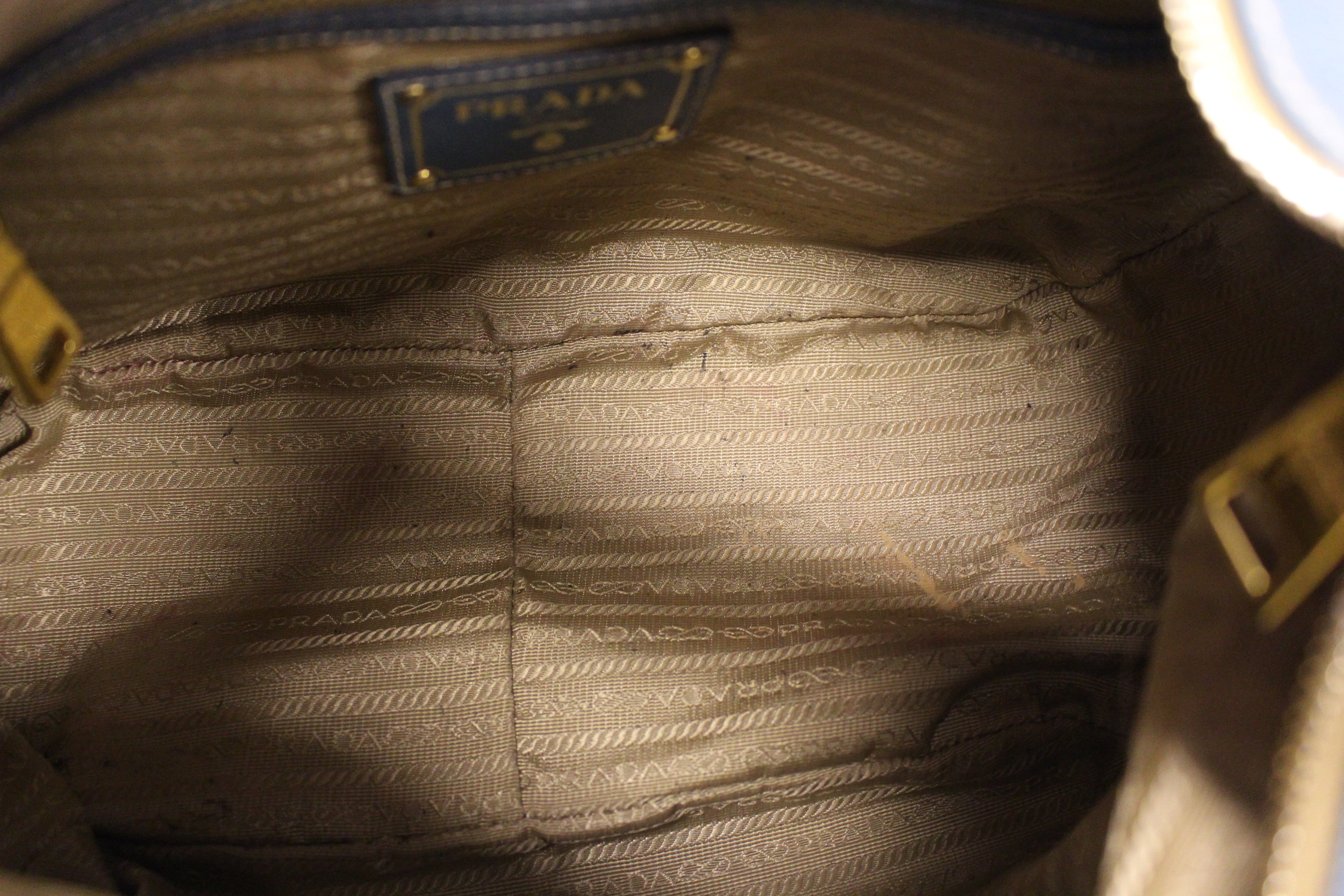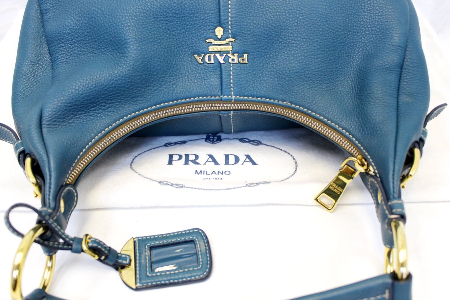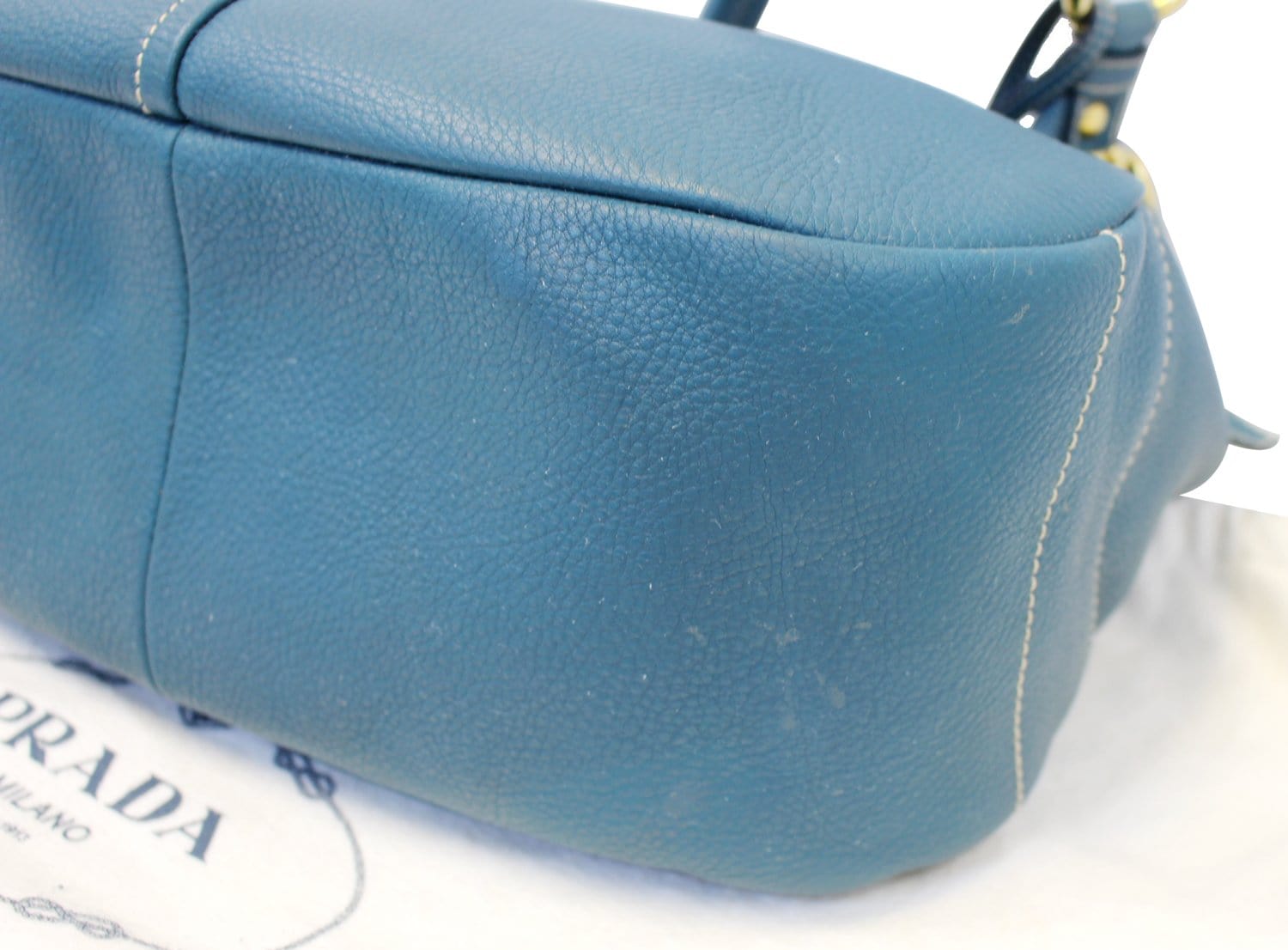 PRADA Sughero Vitello Daino Leather Zip Top Hobo Bag Blue
