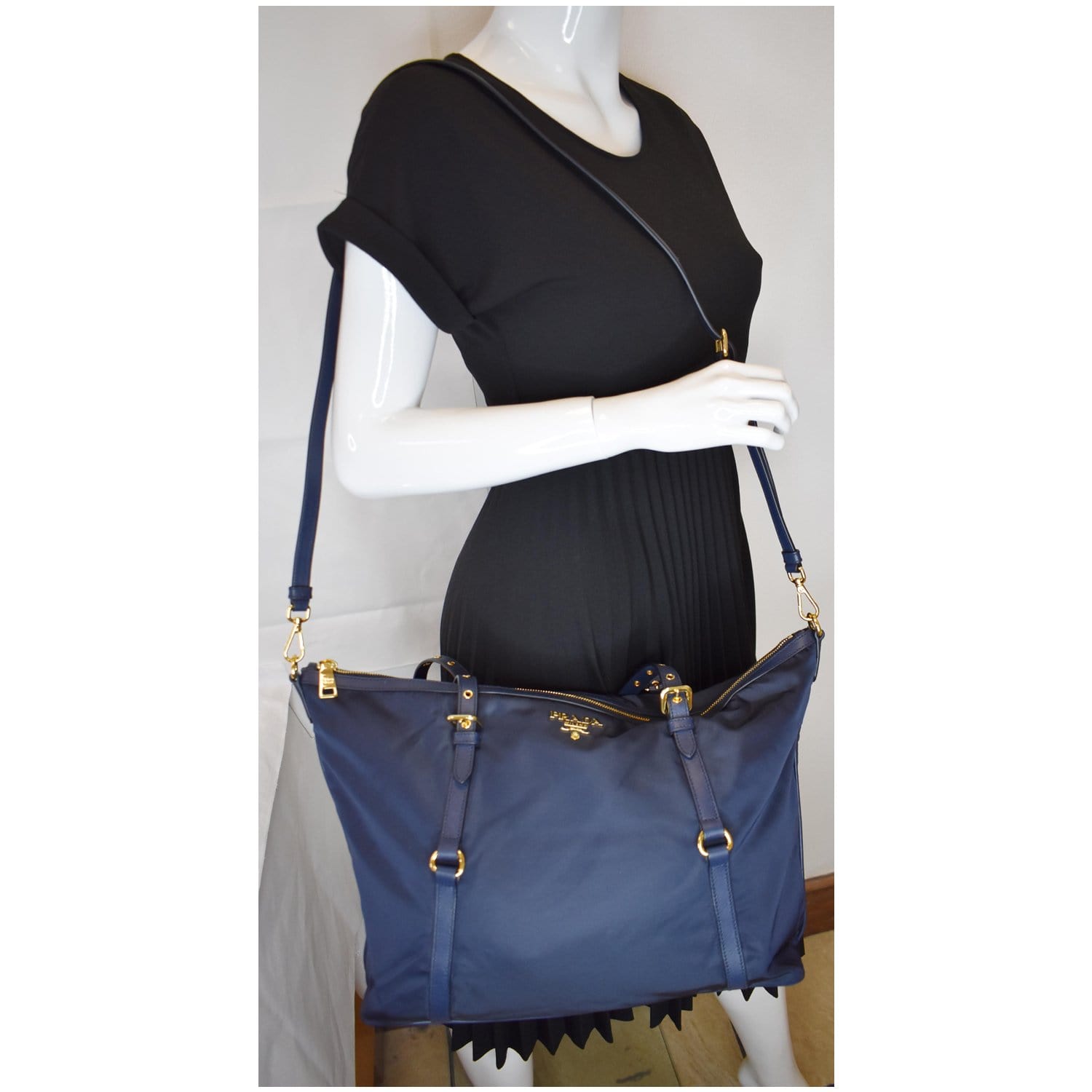 PRADA Tessuto Saffiano Nylon Tote Shoulder Bag Blue