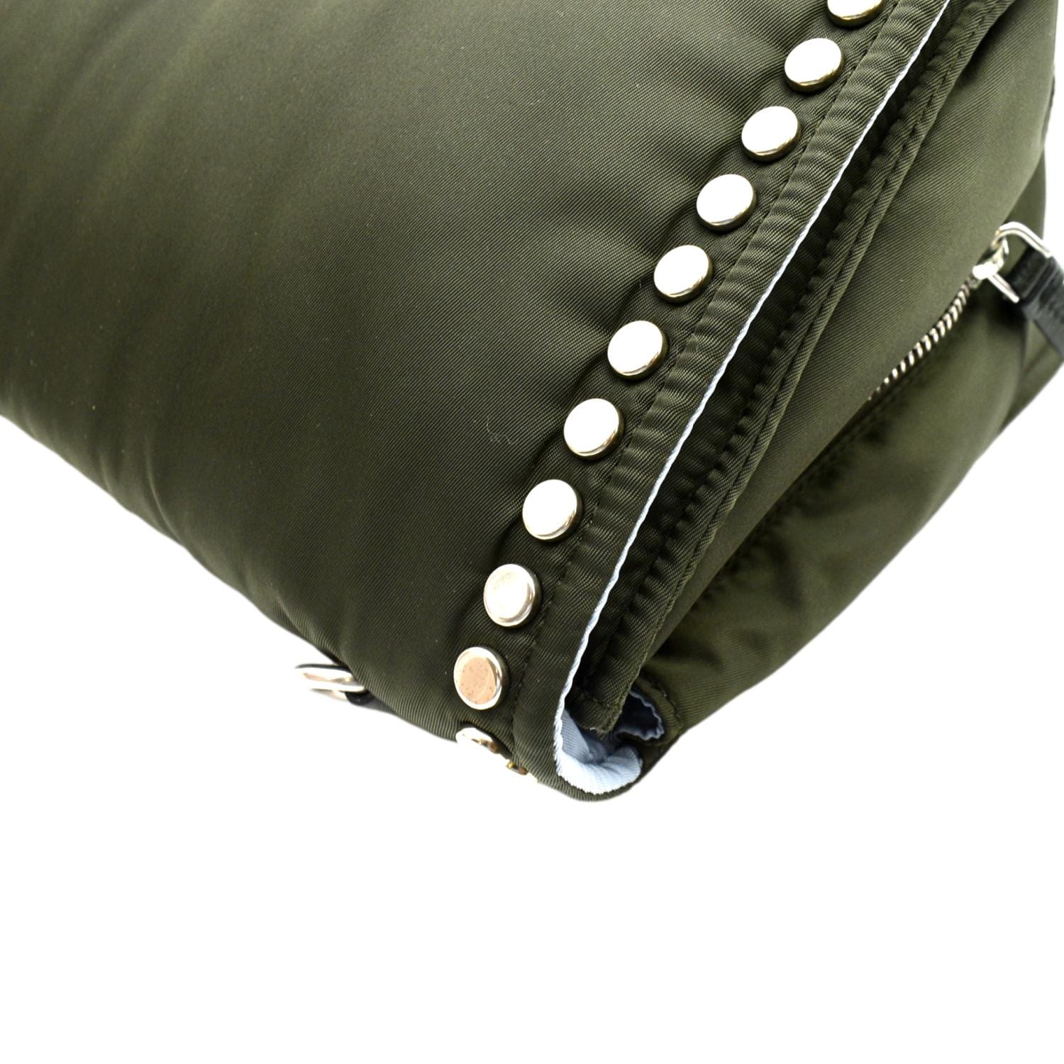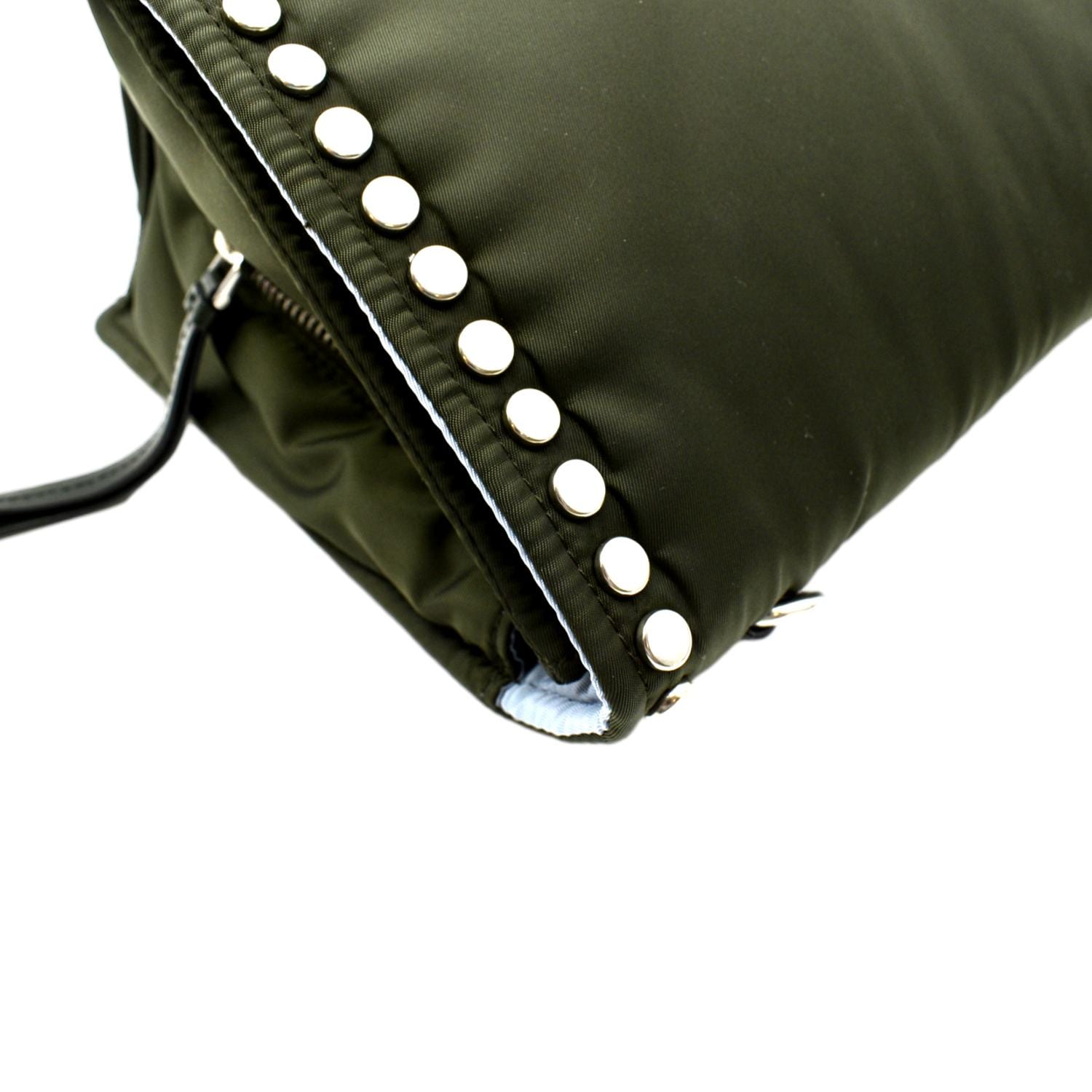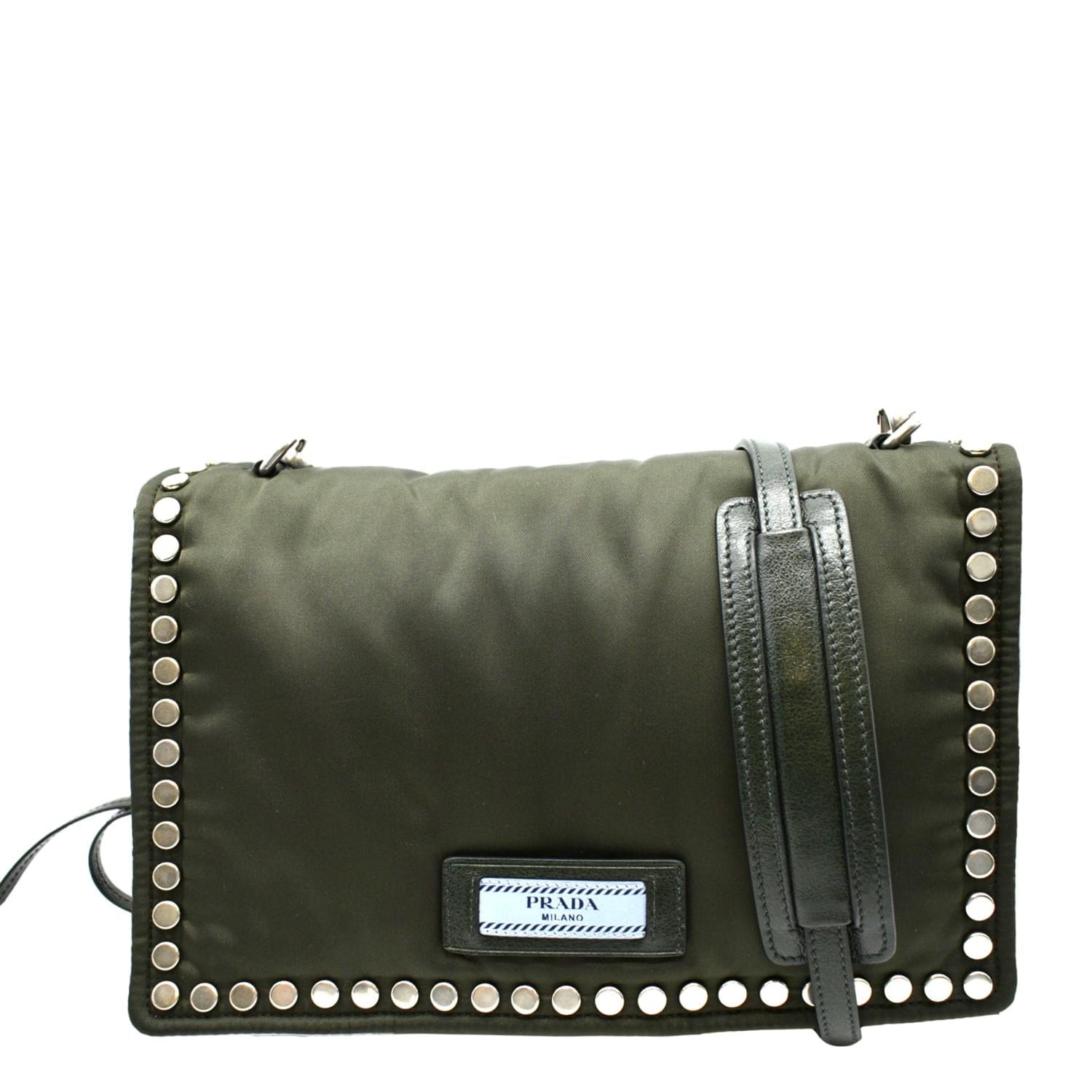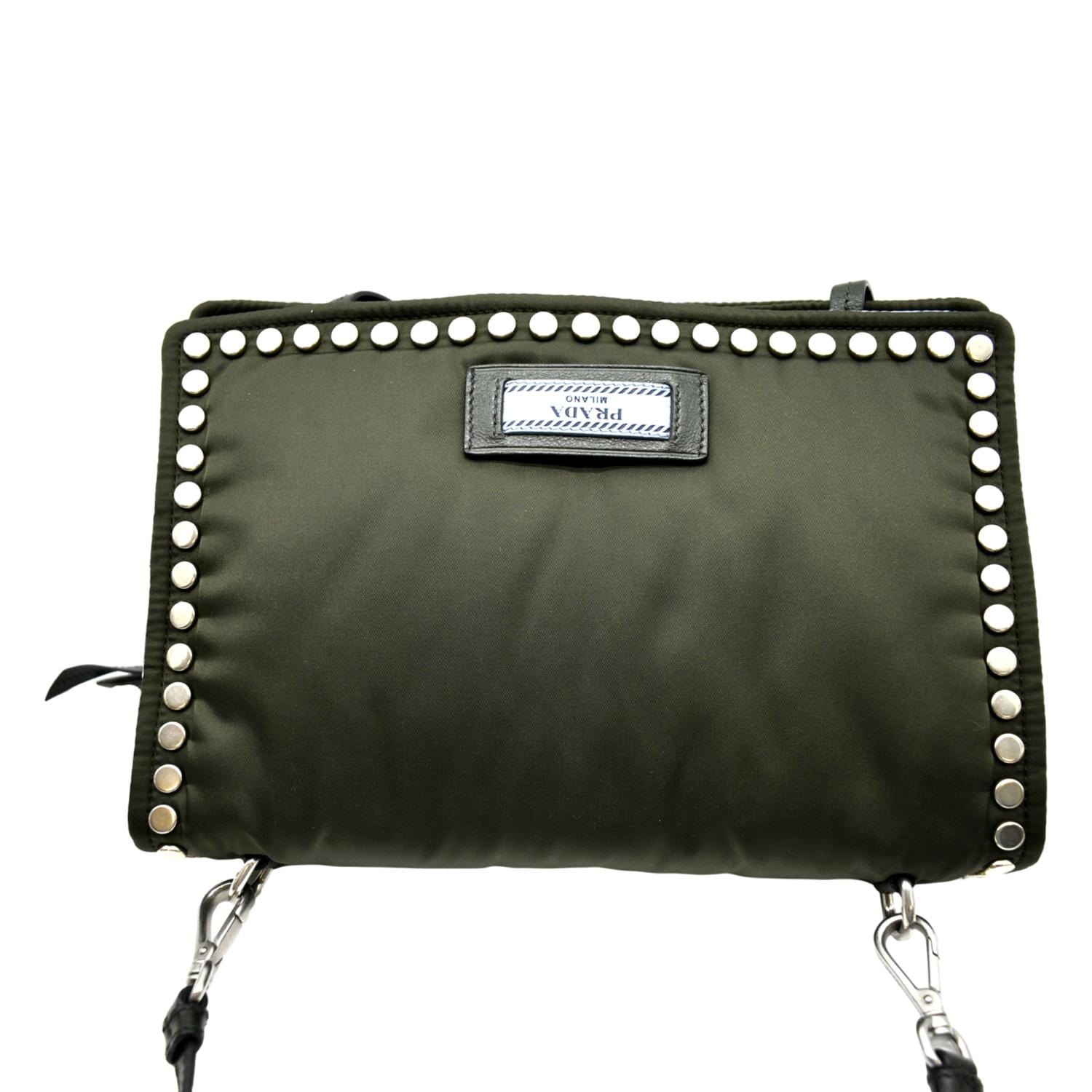 PRADA Tessuto Studded Etiquette Nylon Shoulder Bag Olive Green