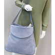 Vitello Daino Flap Suede Leather Hobo Bag Sky Blue