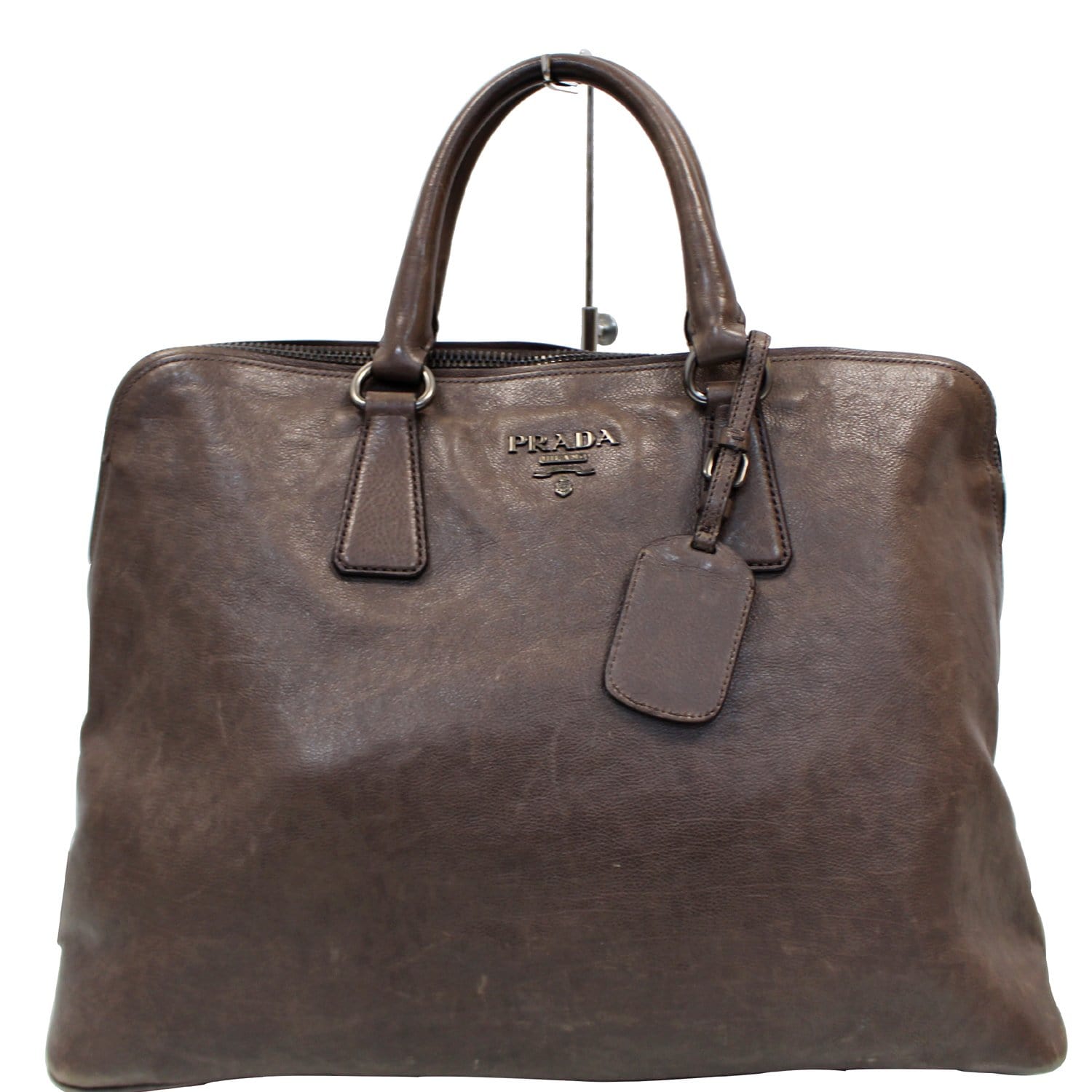 Prada Vitello Daino Leather Large Tote Bag Brown