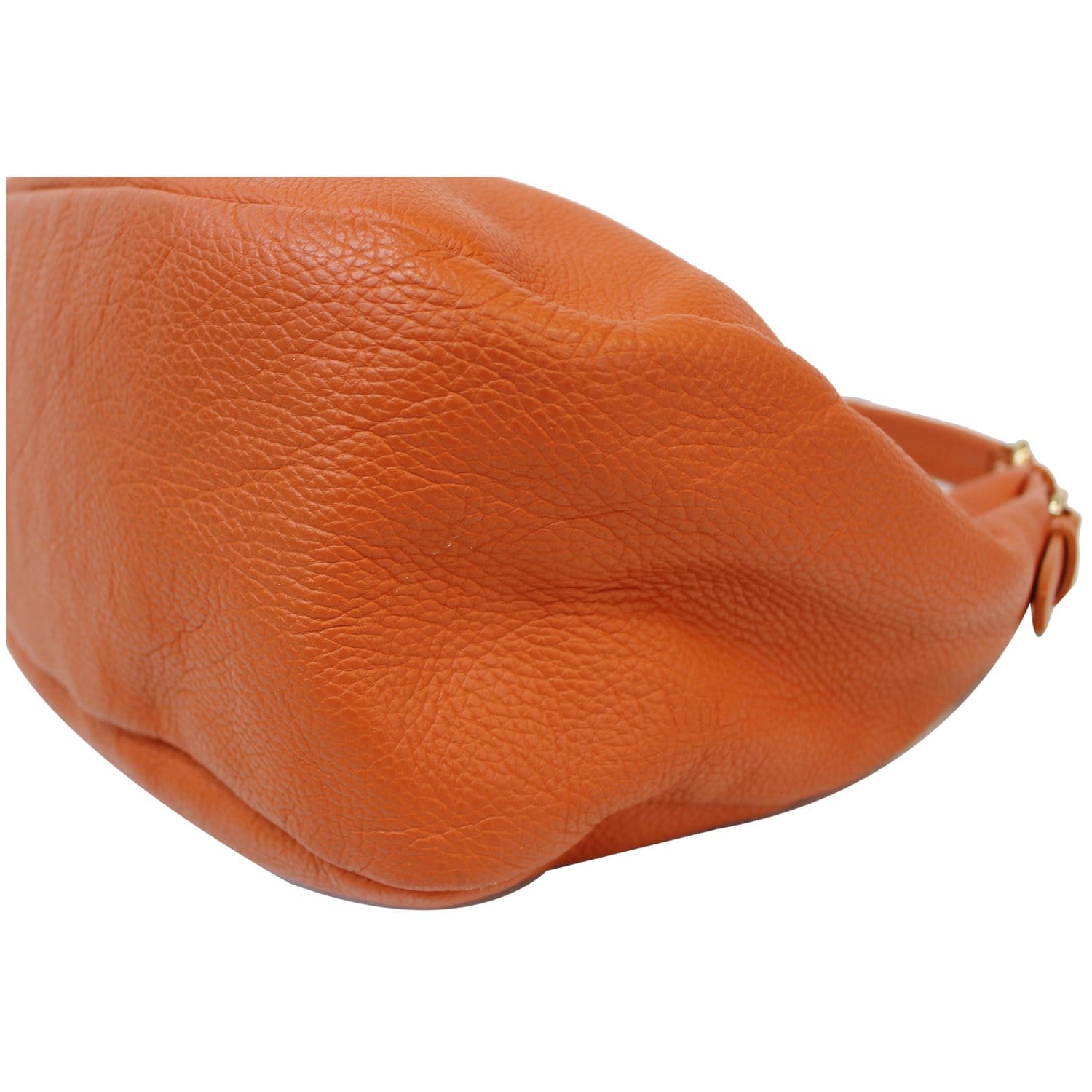 Vitello Daino Pebbled Leather Hobo Bag Orange