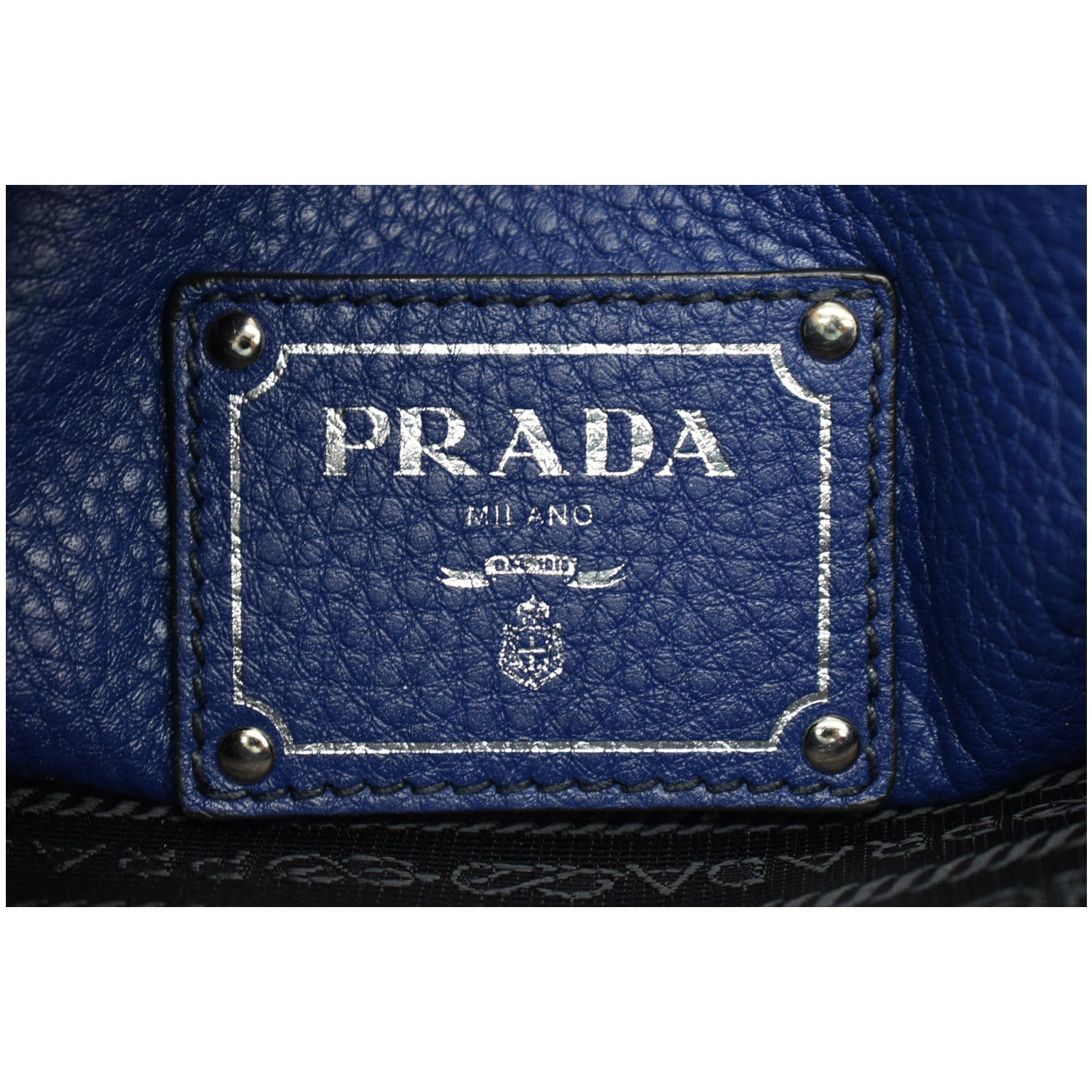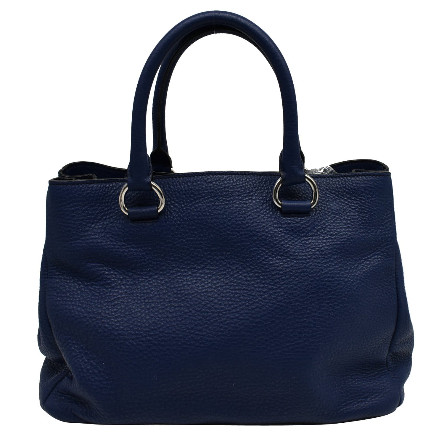 PRADA Vitello Daino Pebbled Leather Tote Bag Blue