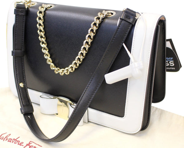 Salvatore Ferragamo Black/White Vara Flap Shoulder Crossbody Bag - Last Call
