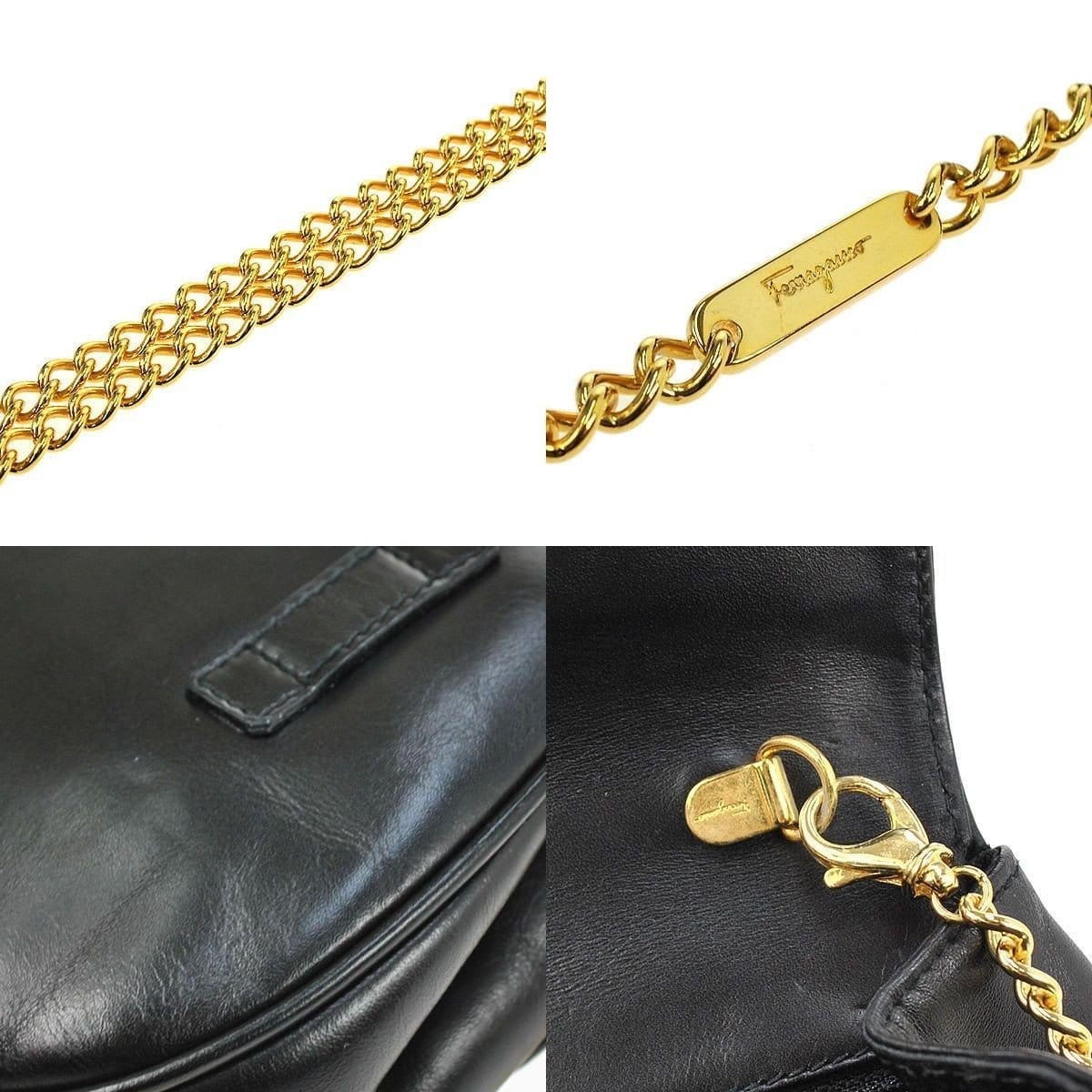 Salvatore Ferragamo Gancini Chain Black Gold Shoulder Bag