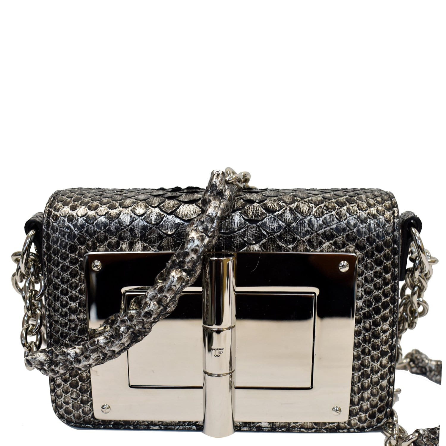 TOM FORD Natalia Small Chain Turnlock Shoulder Bag Silver - 15% OFF