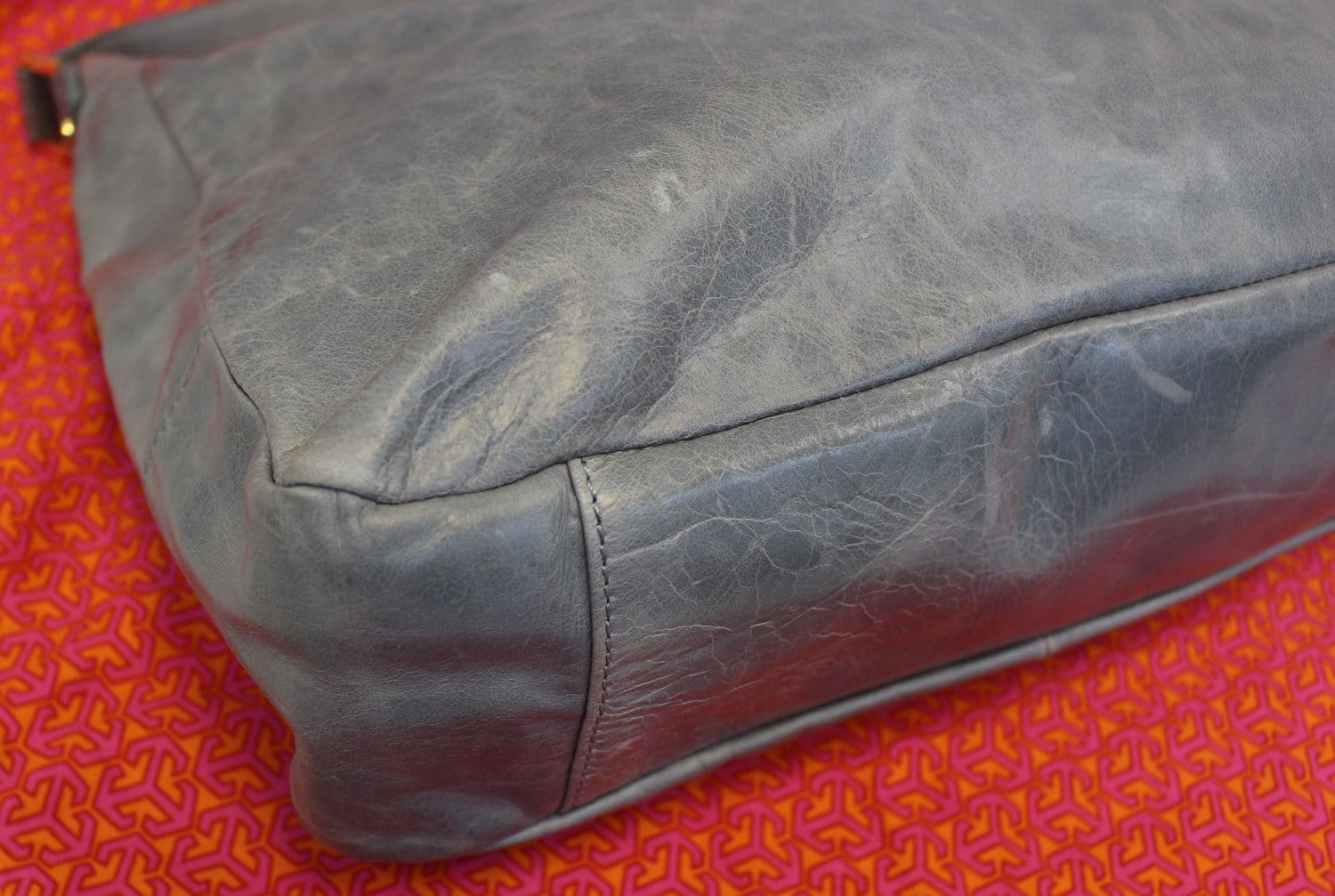 Visible Scratches, rubbed corners, leather tanning darkening. inside stains