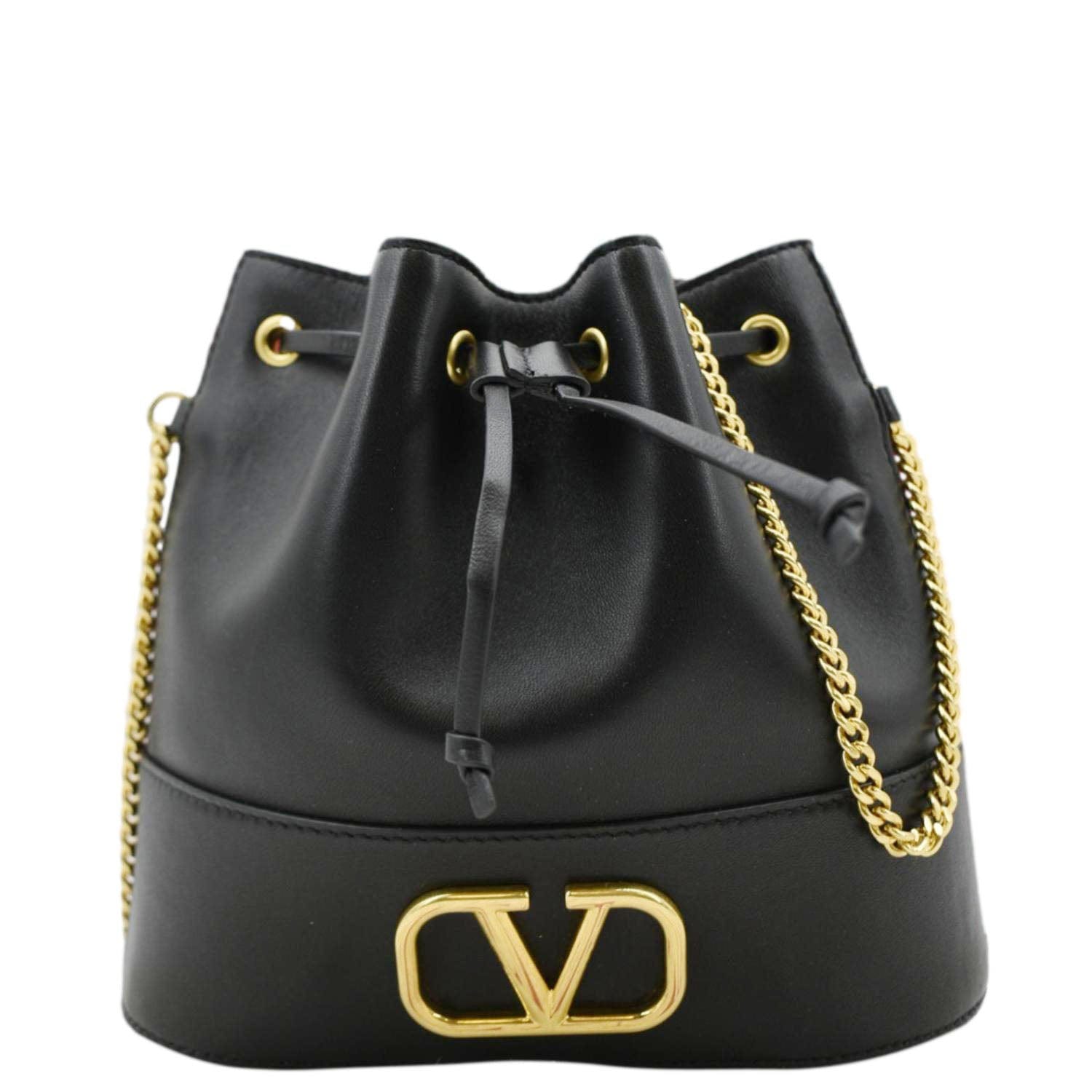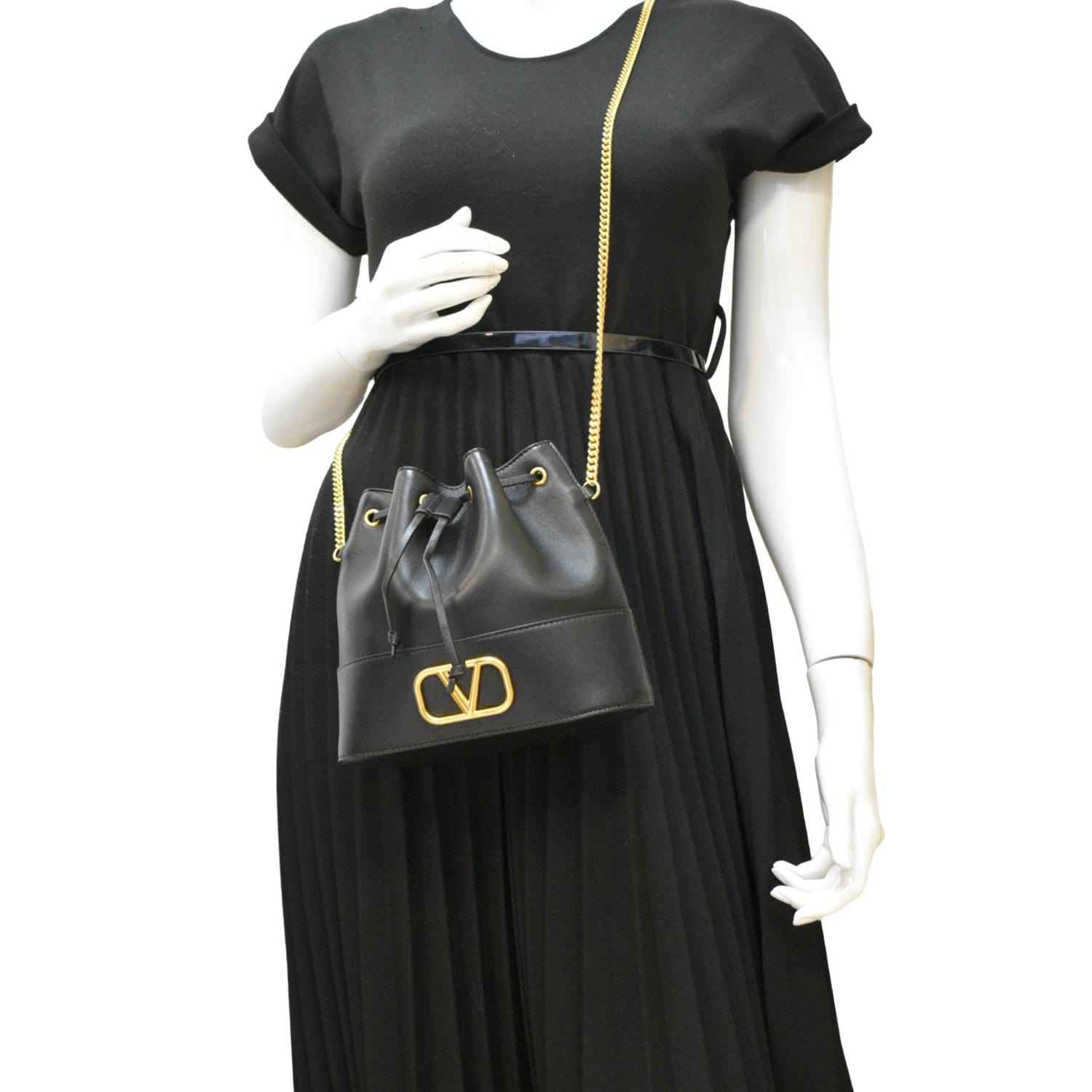 VALENTINO Mini Bucket Nappa Leather Chain Crossbody Bag Black