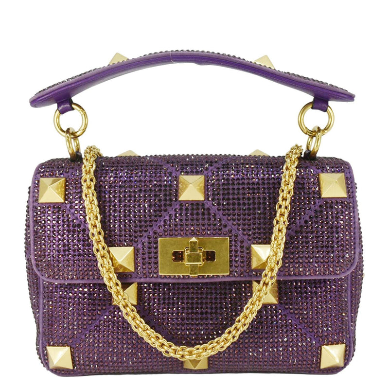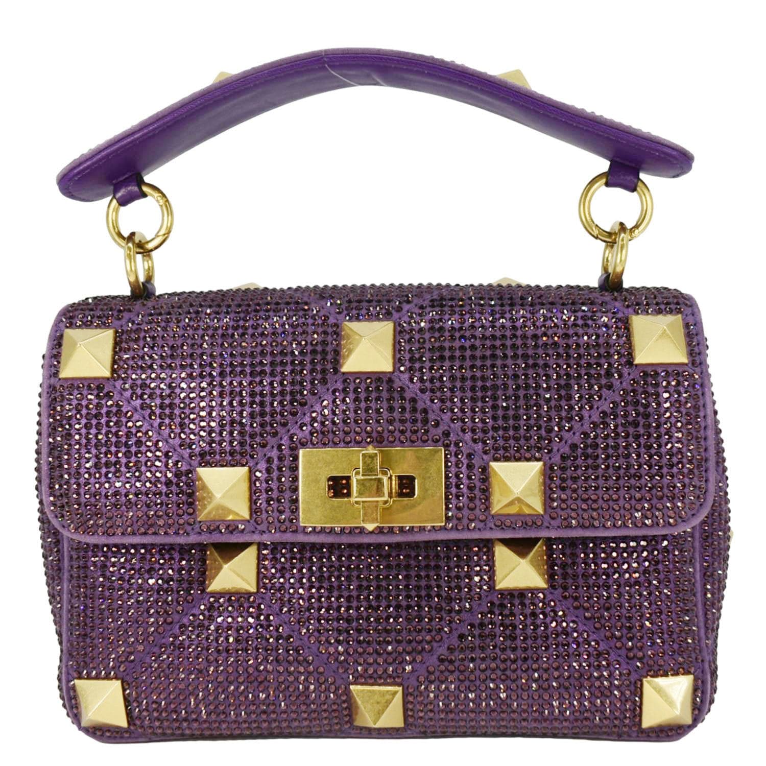 VALENTINO Atelier Stud Crystal Embellished Purple Crossbody Bag