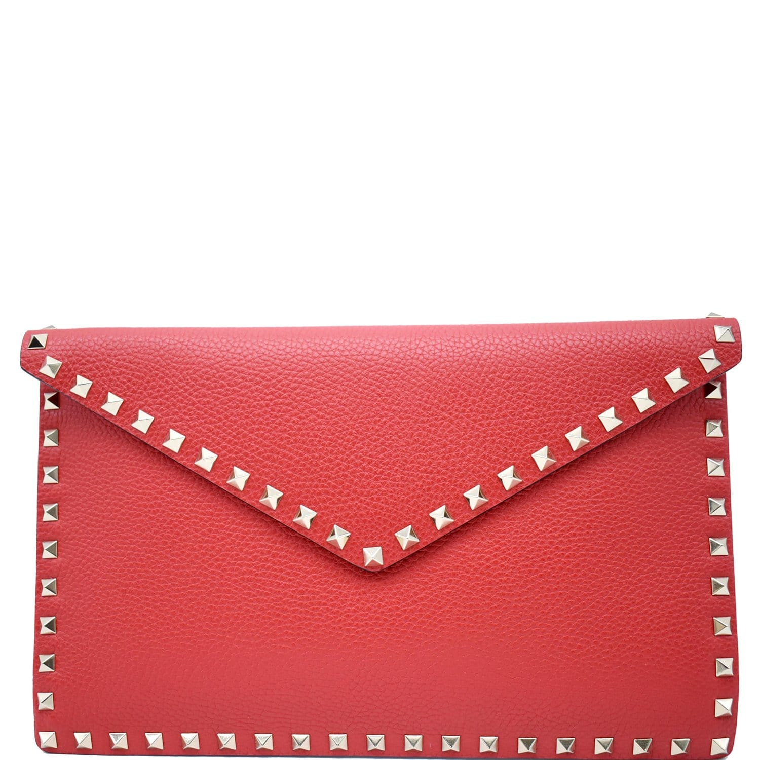 VALENTINO Garavani Rockstud Grainy Envelope Pouch Red