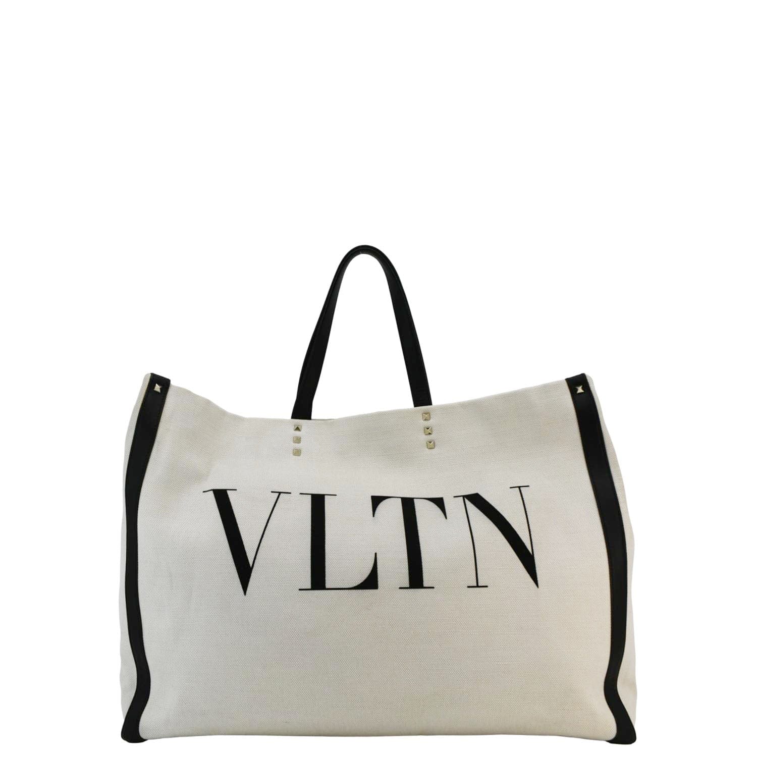 The Valentino Garavani VLTN Canvas Tote Bag in white showcases the iconic VLTN logo on premium canvas fabric. Featuring sturdy handles and a spacious, minimalist design, it combines modern style with everyday practicality.