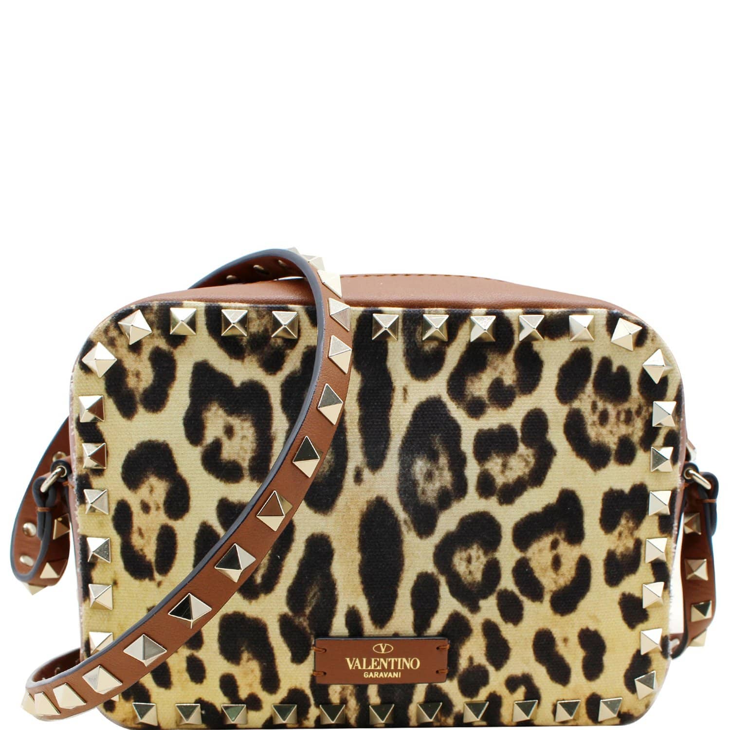 Rockstud Leopard Canvas Leather Camera Bag Selleria