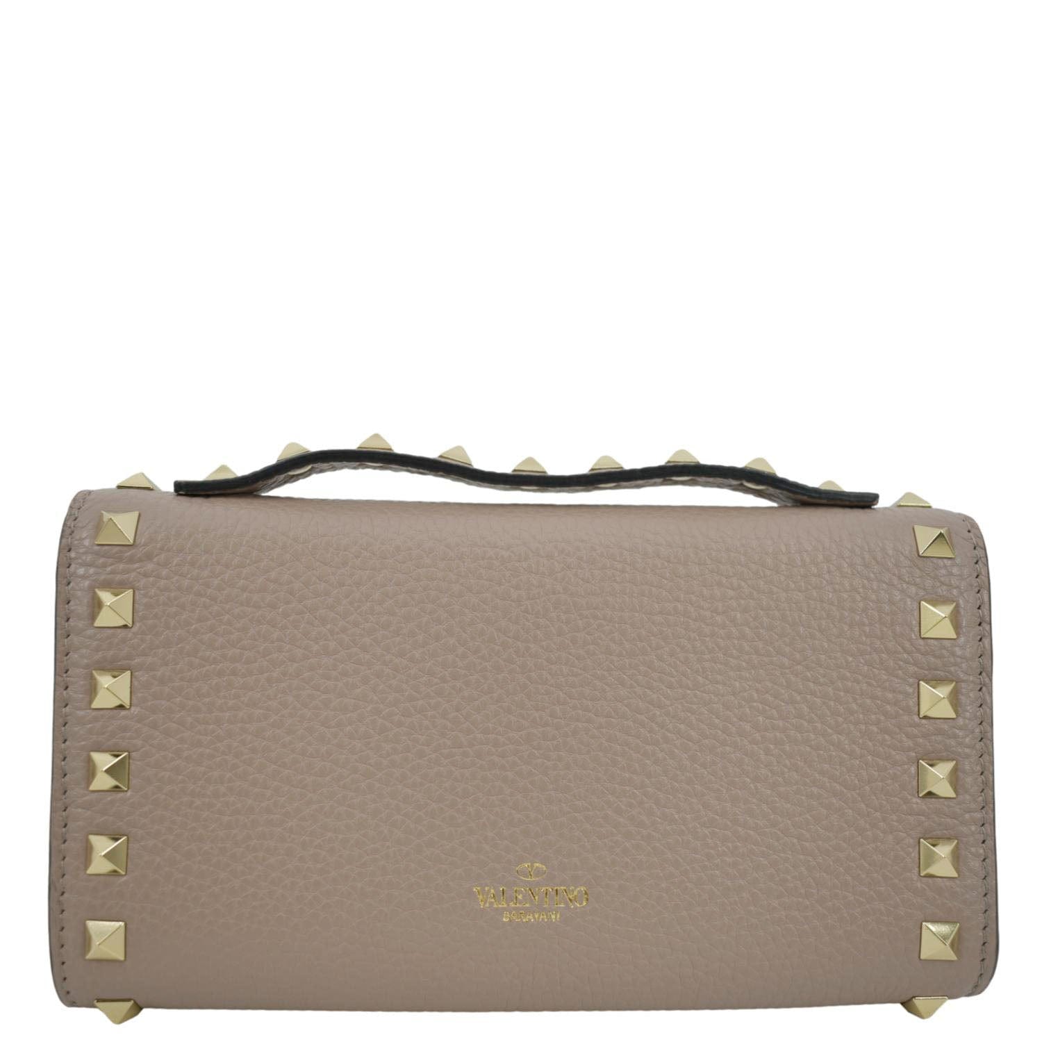 VALENTINO Garavani Small Rockstud Flap Leather Crossbody Bag Beige